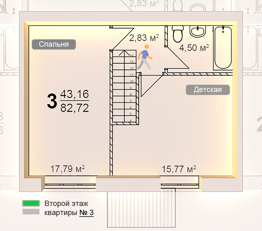 Жилая площадь 43.16 м2