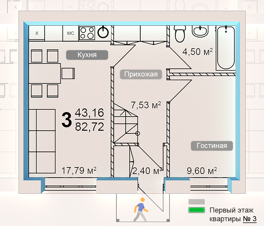 Площадь кухни 17.79 м2