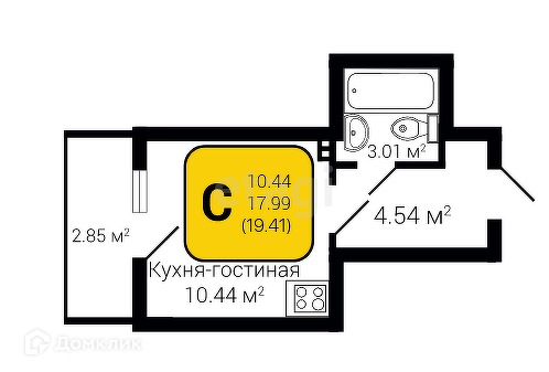 Общая площадь 19.41 м2