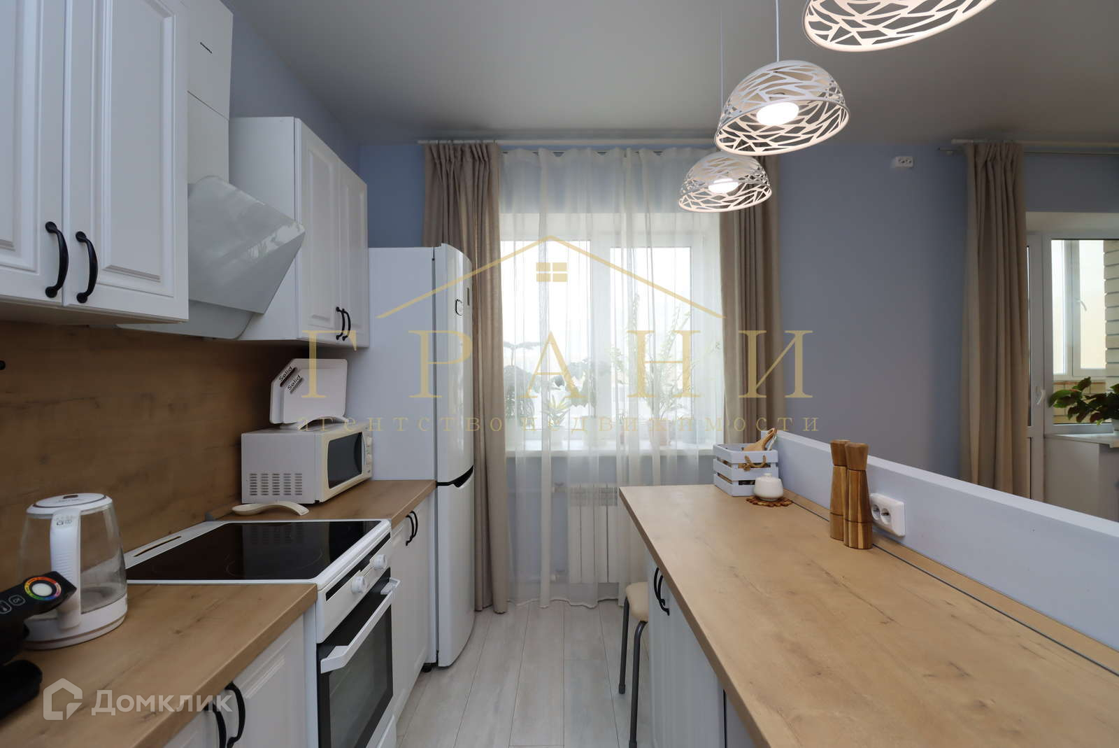"Распашонка" на 2 стороны, светлая кухня-гостиная с двумя окнами.