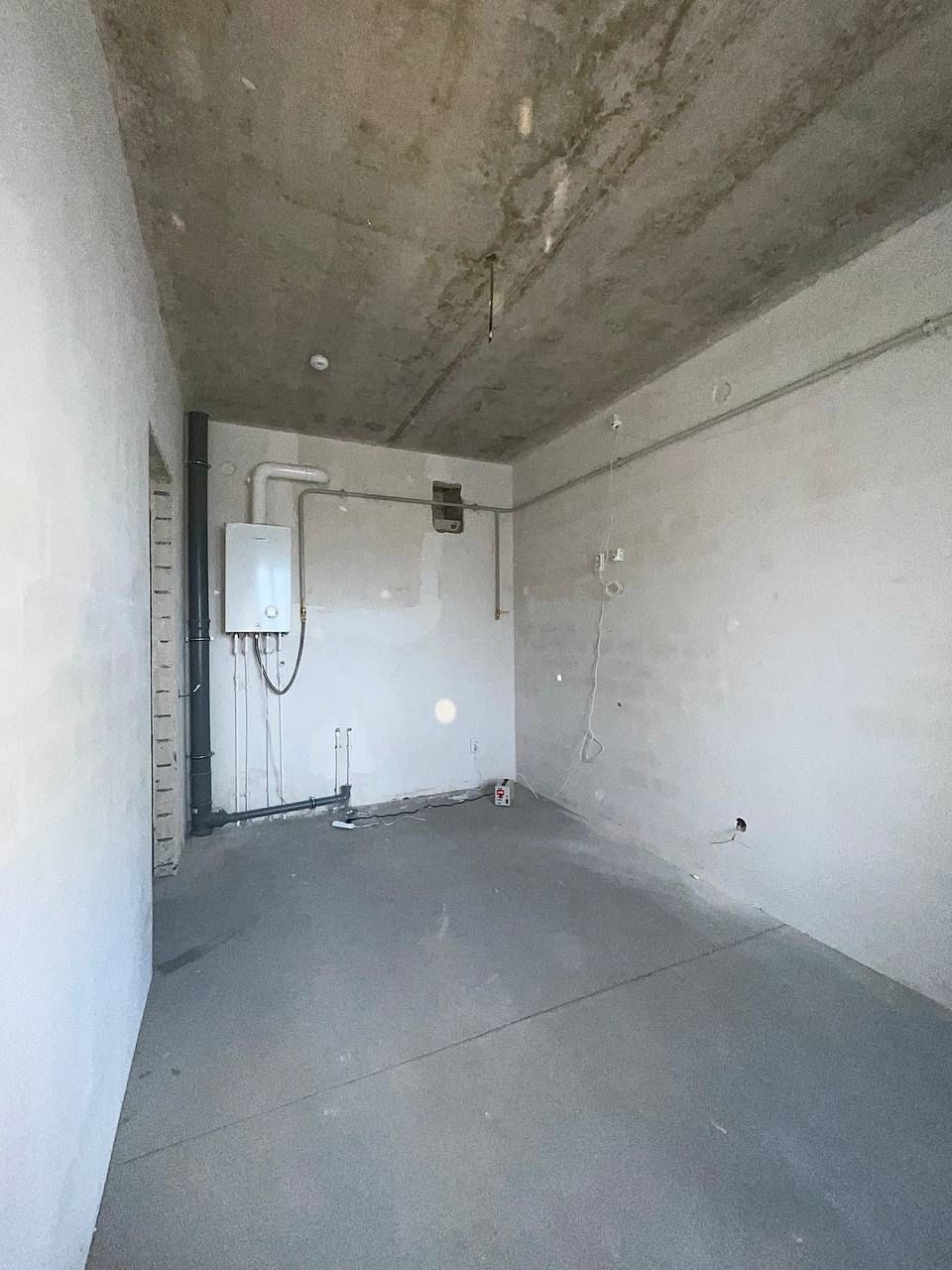 Квартира с качественной черновой отделкой, стяжка на полу, стены оштукатурены, разведена сантехника, электрика, отопление. Установлен газовый котёл, приборы учёта электричества, воды, газа. Индивидуальное отопление. Балкон остеклен.