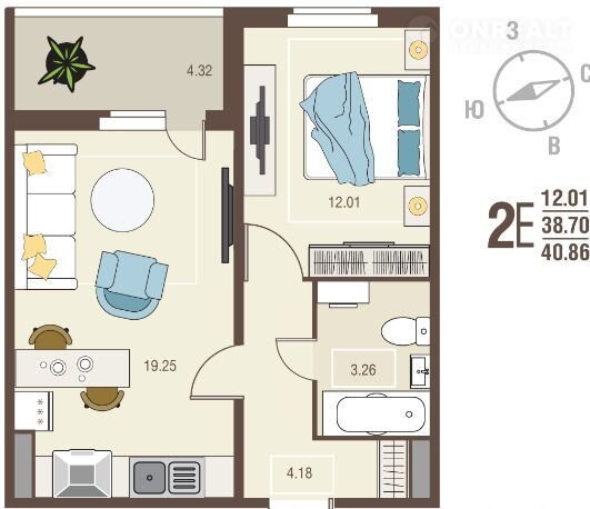 Общая площадь 40.9 м2