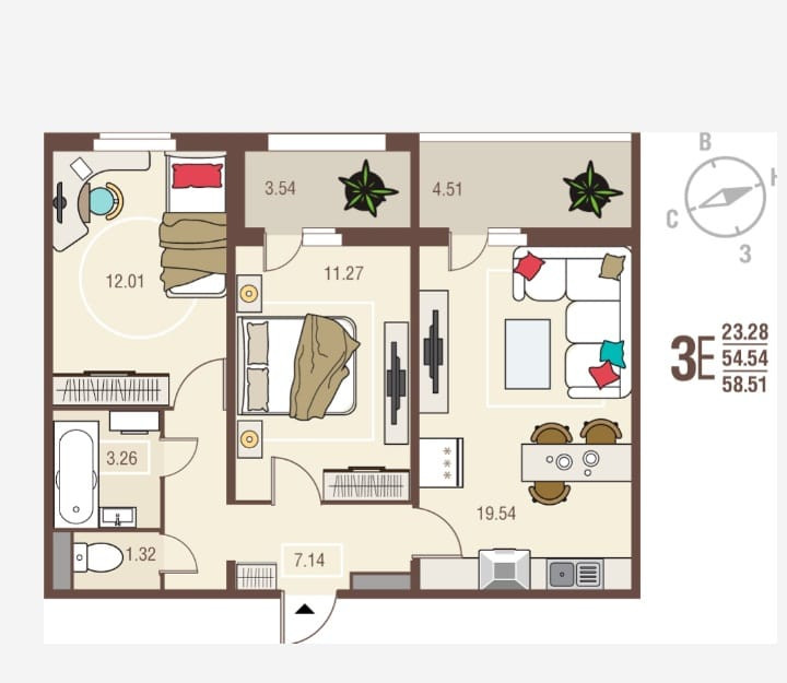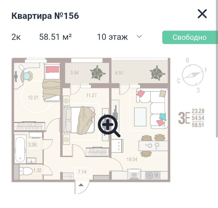 Площадь кухни 19.54 м2