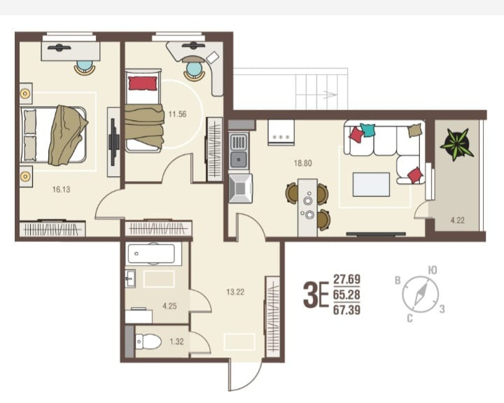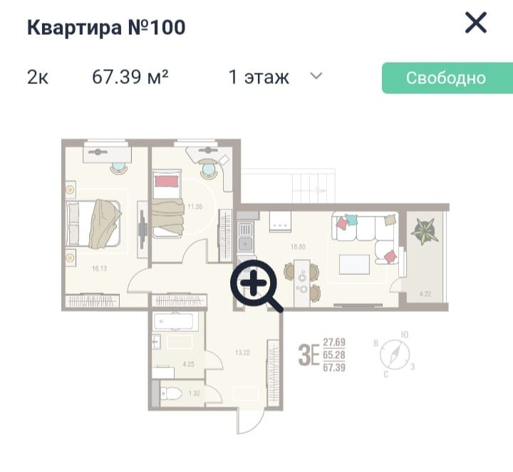 Общая площадь 67.39 м2