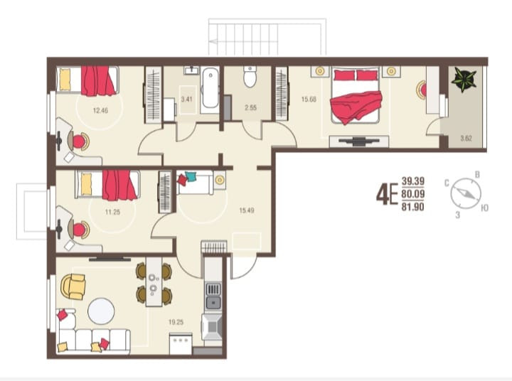 Общая площадь 81.9 м2
