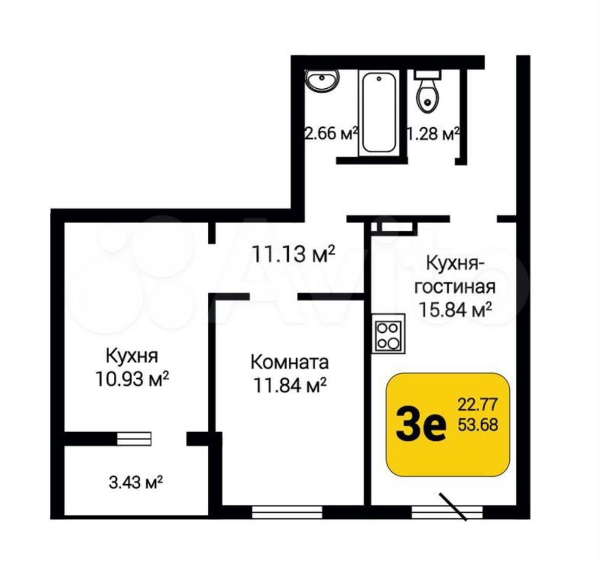 Общая площадь 55.8 м2