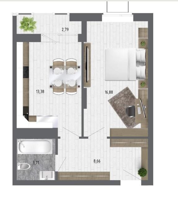 Общая площадь 43.55 м2