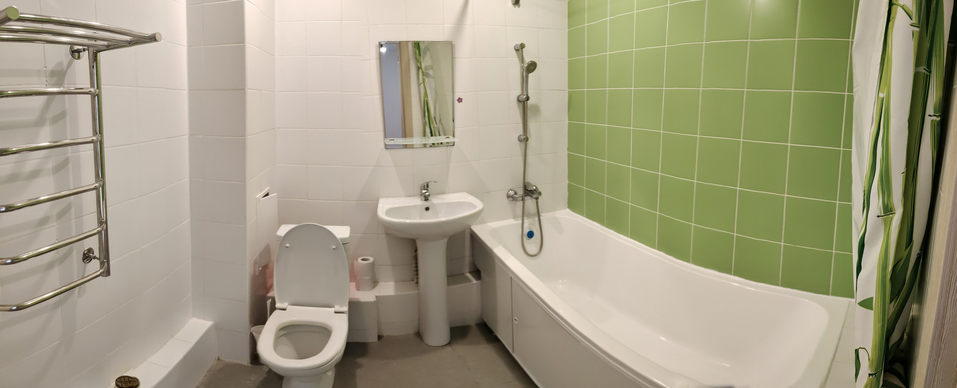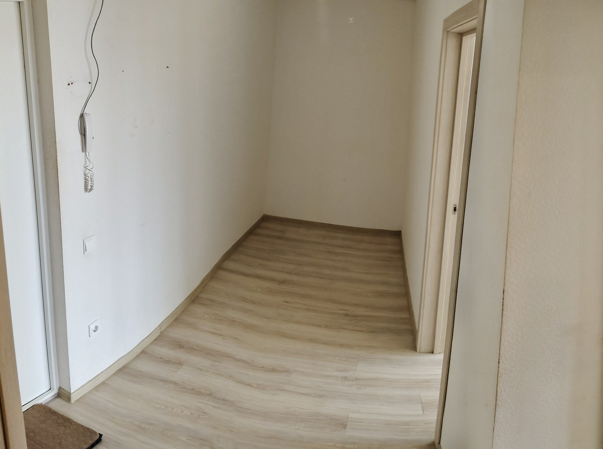 Натяжные потолки, плитка (и керамогранит на полу) в ванной комнате, линолеум на кухне. Ламинат в комнате и коридоре – ему желателен ремонт.