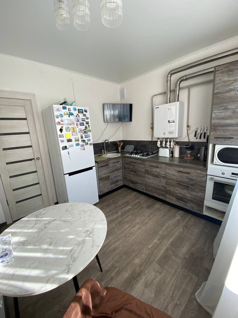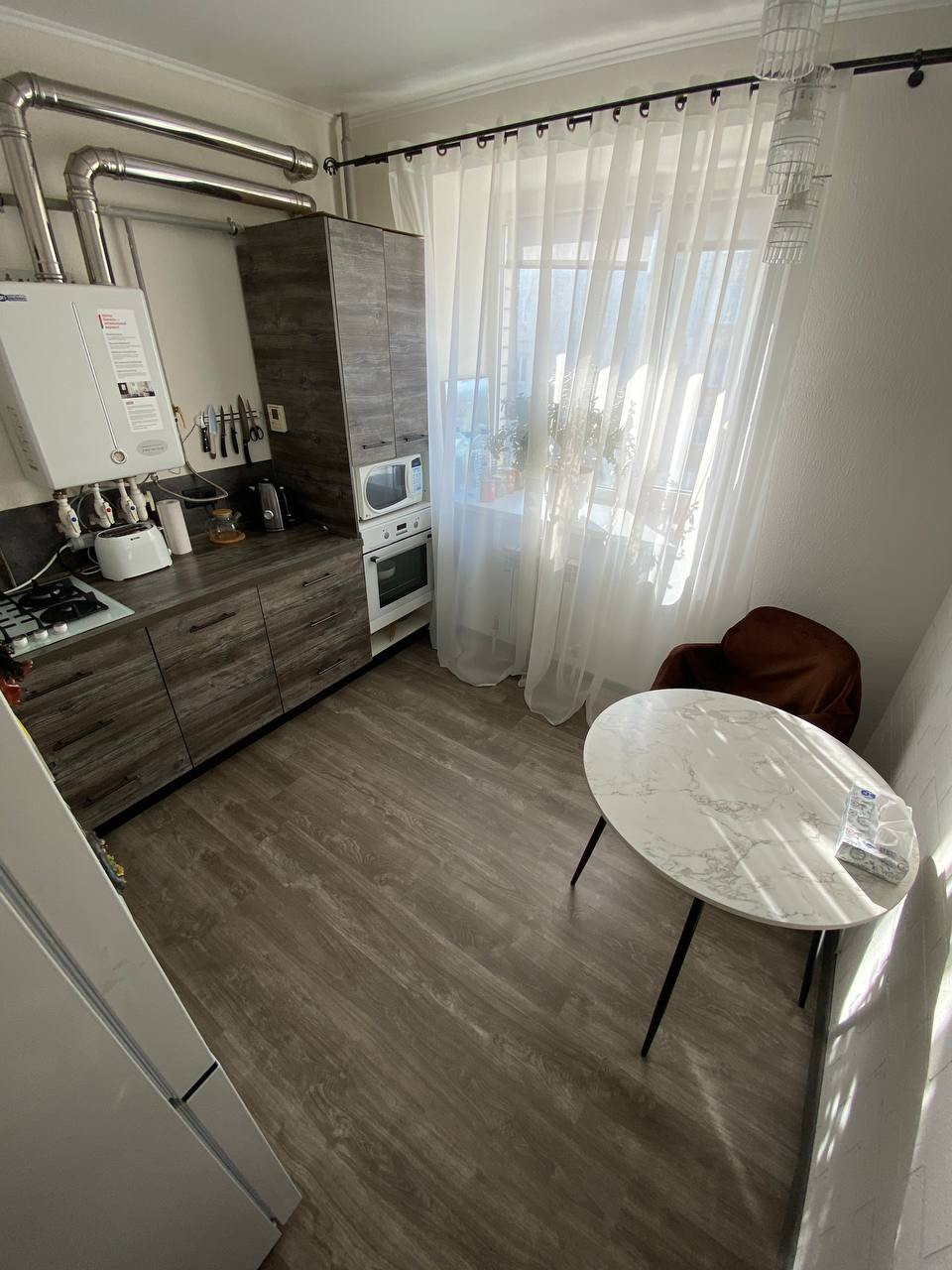 Продам однокомнатную квартиру. Кухня в подарок. ( холодильник, посудомоечная машина Bosh, варочная панель Bosh, духовой шкаф остаются).Индивидуальное отопление. Небольшая , но очень удобная гардеробная, по желанию можно сделать кладовой. Очень удобное расположение. Микрорайон пчёлка. До центра 10 минут пешком. На первом этаже дома находится магазин пятёрочка, пункт выдачи озон и Яндекс маркет. Закрытая домовая территория с детской площадкой. Парковка во дворе. Автоматические ворота. Автобусная остановка напротив дома. Автобусы ходят каждые 7 минут. Легко уехать. Собственник.   Все интересующие вопросы по телефону.