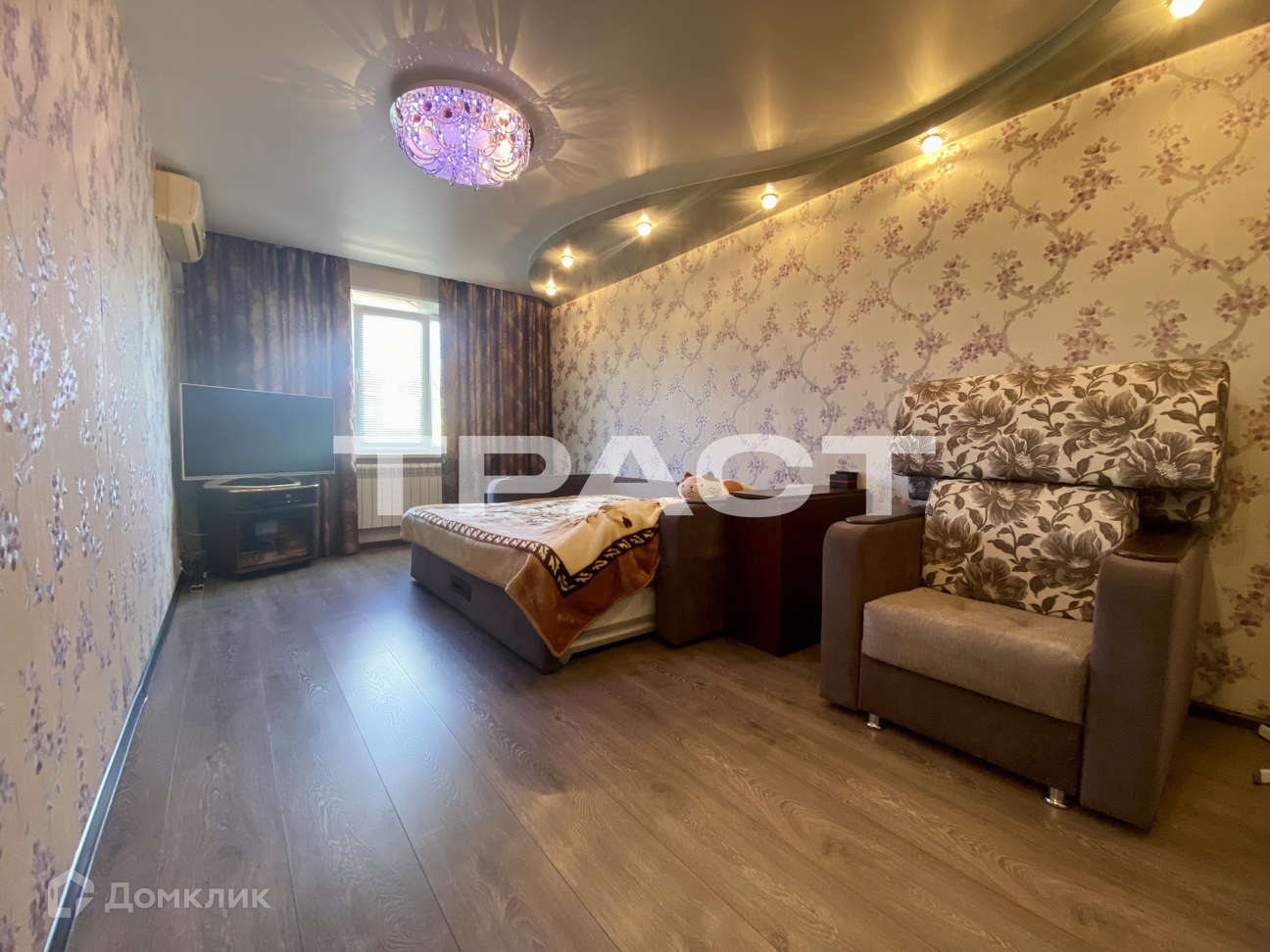 Кондиционер и большая часть мебели останется новым собственникам.Большая ,просторная кладовая 4.2 есть возможность сделать свою гардеробную .