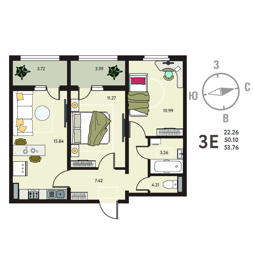 Общая площадь 53.76 м2