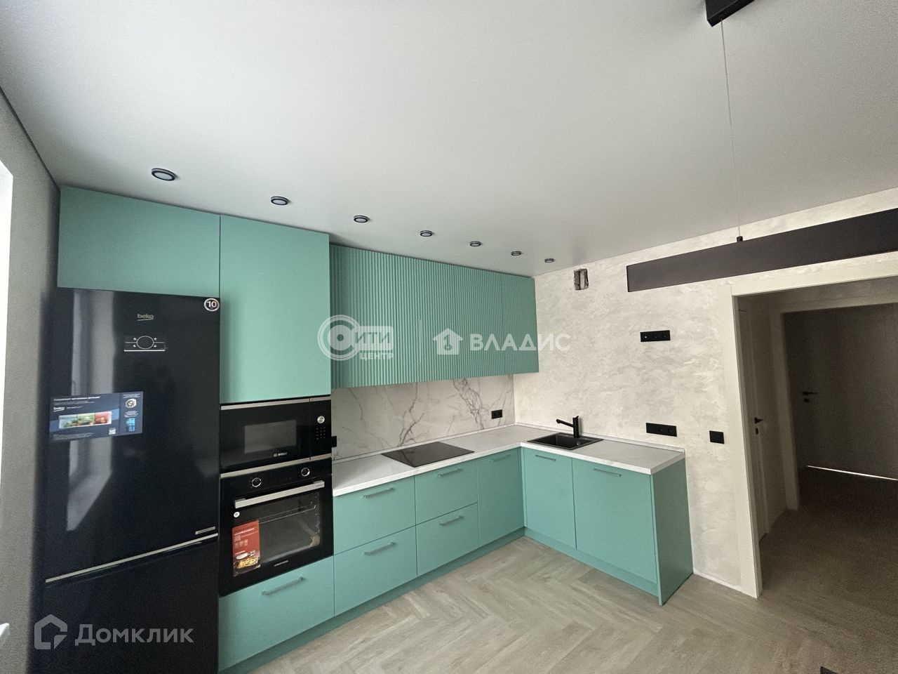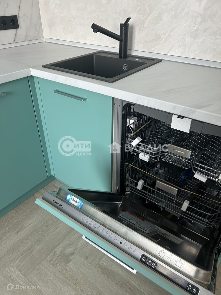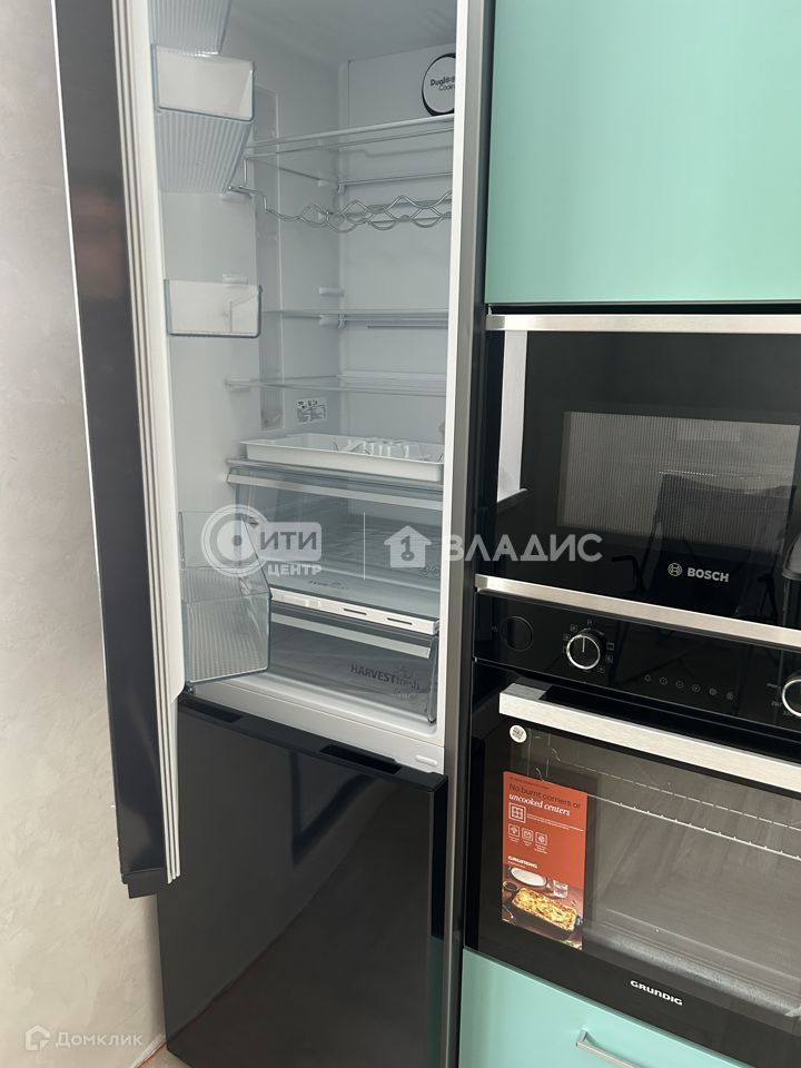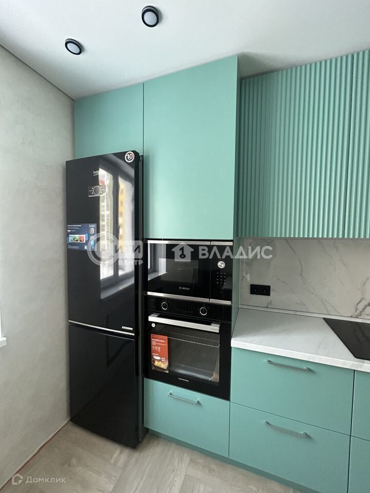 На кухне установлена вся бытовая техника: холодильник, встраиваемая микроволновка, духовой шкаф, посудомоечная машина, вытяжка.