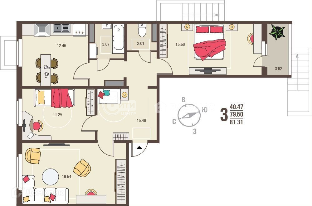 Общая площадь 81 м2