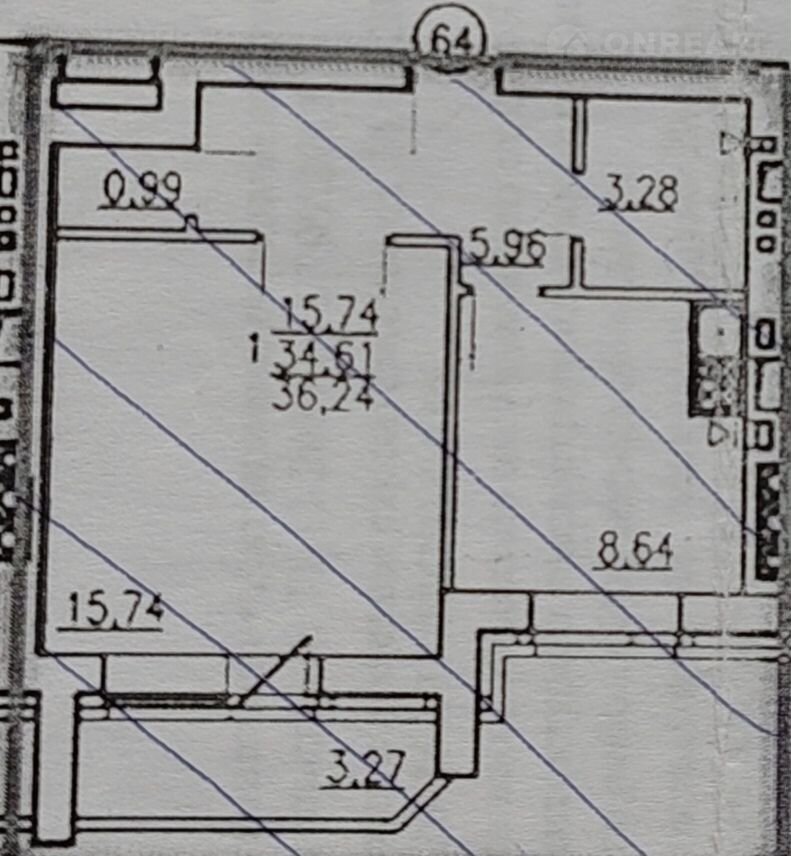 Общая площадь 36.3 м2