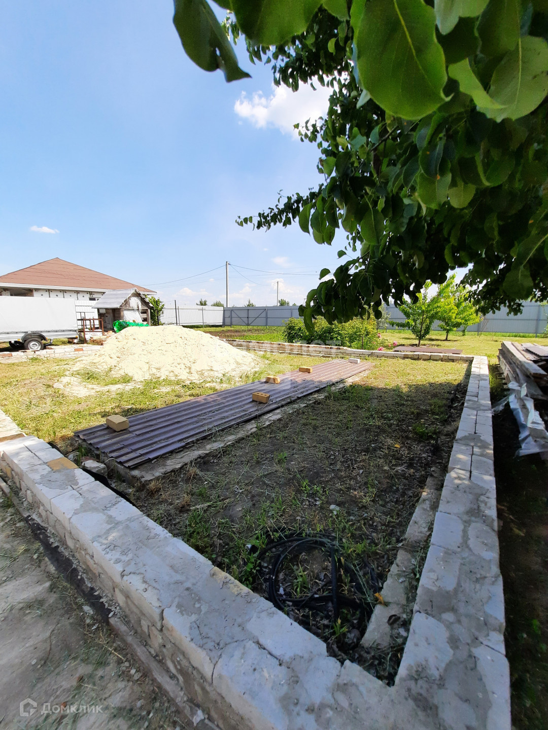 на участке выложен фундамент для дома и гаража