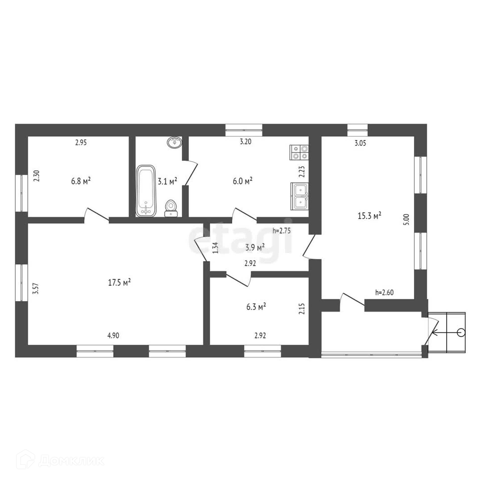 1-этажный дом, 63.1 м2, на продажу в селе Новлянском