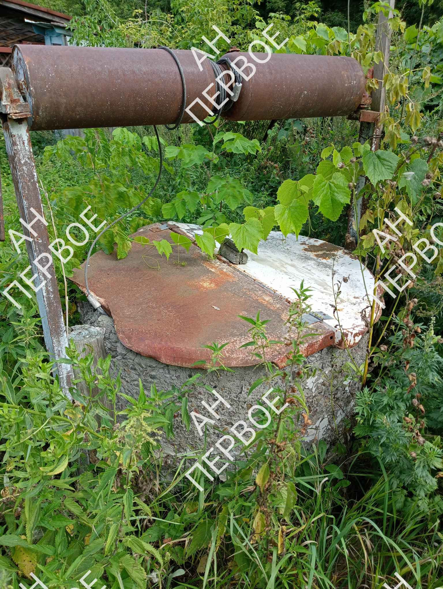На большом участке правильной формы есть колодец, большой сарай, летний туалет. Растут большие яблони и груши, земля плодородная чернозем Участок огорожен сеткой . За участком много земли , протекает речка.