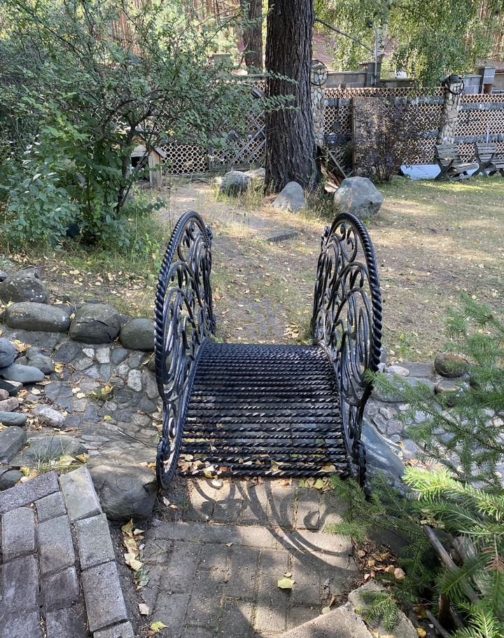 пруд с красивым мостиком;