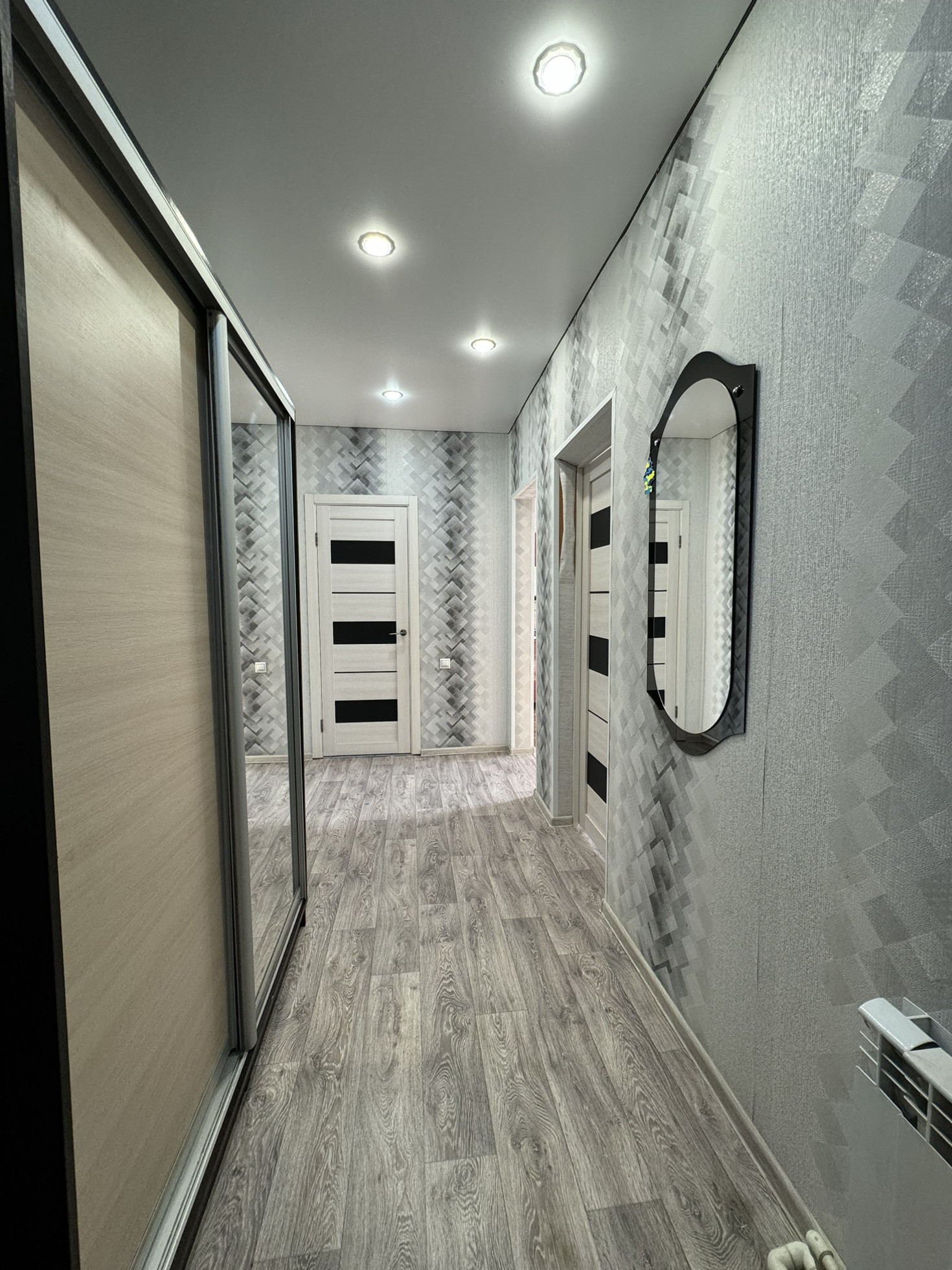 Остается кухонный гарнитур, шкаф в прихожей, кровать и шкаф в спальне