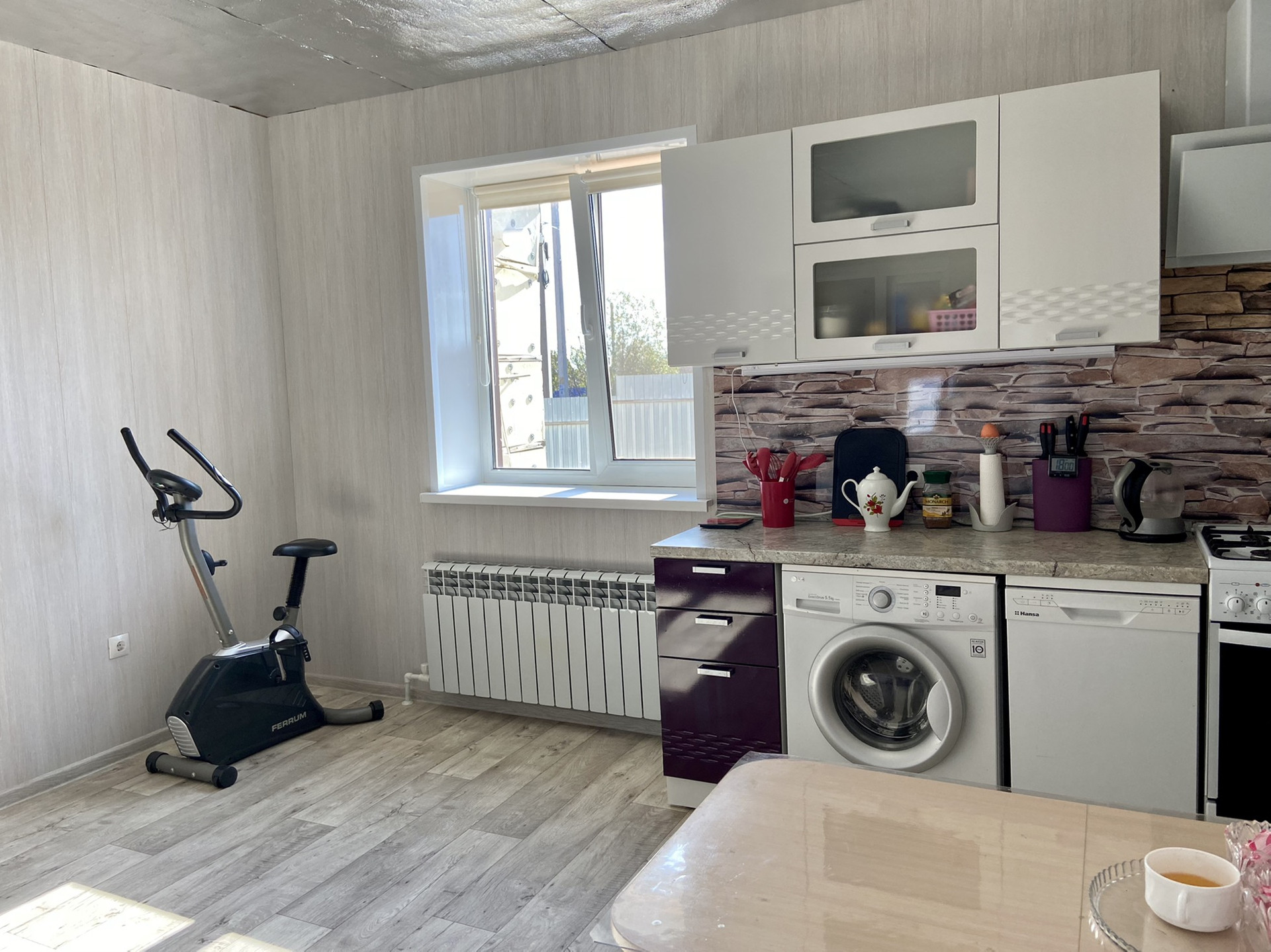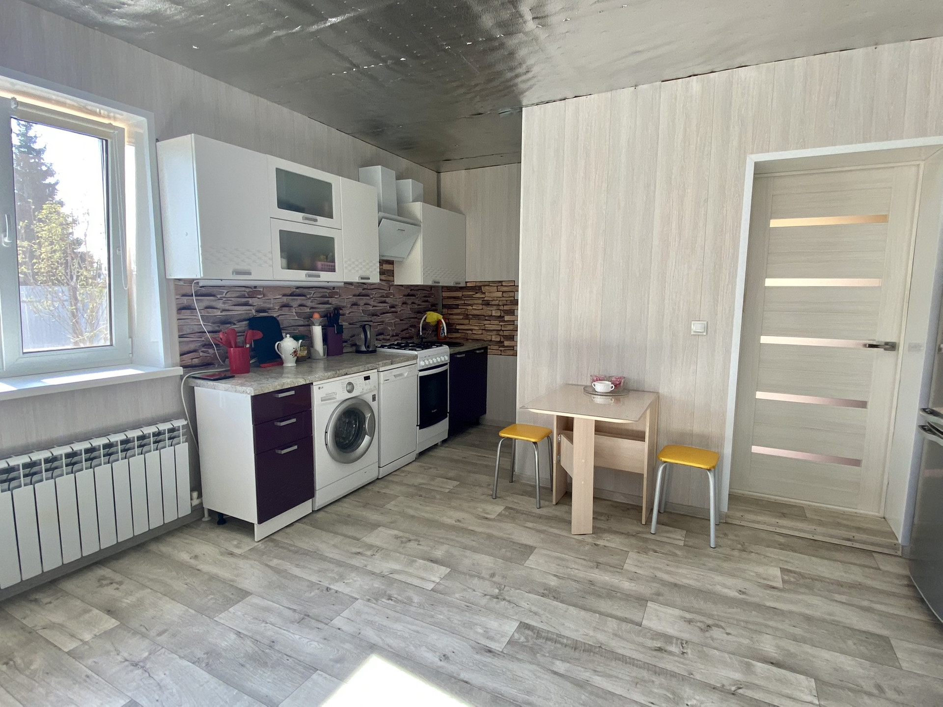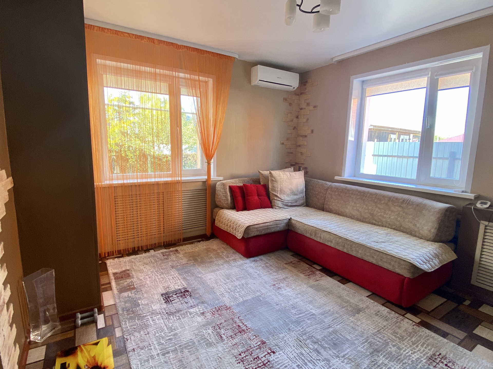 Площадью - 66,3 кв.м.,  со всеми удобствами, центральное водоснабжение, канализация- яма выгребная, отопление- газ. Котёл, видеонаблюдение.