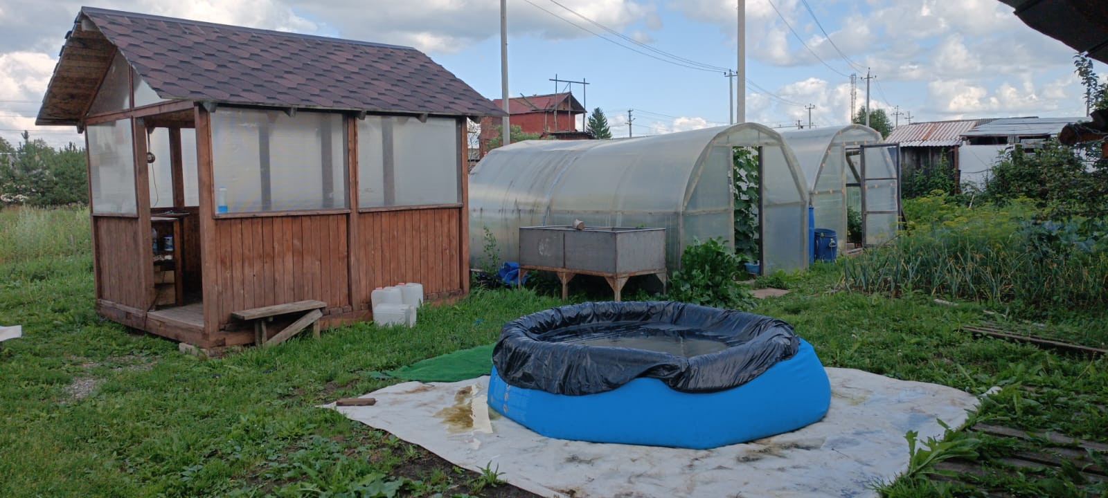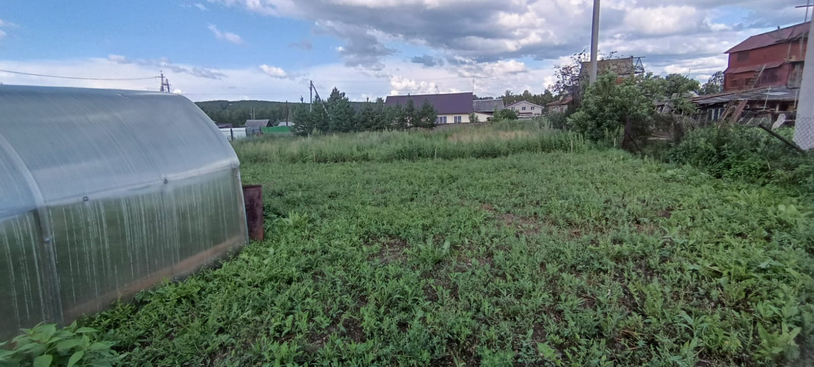 Участок разработан, есть все насаждения, плодовые деревья, кустарники, теплицы.