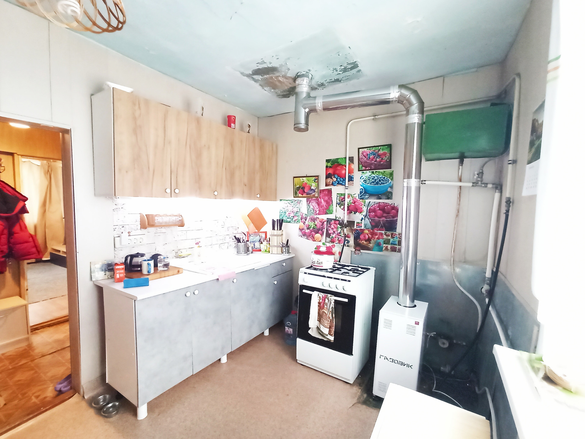 Отопление газовое, вода из скважины (27 метров). Остается кухонный гарнитур и мебель.
