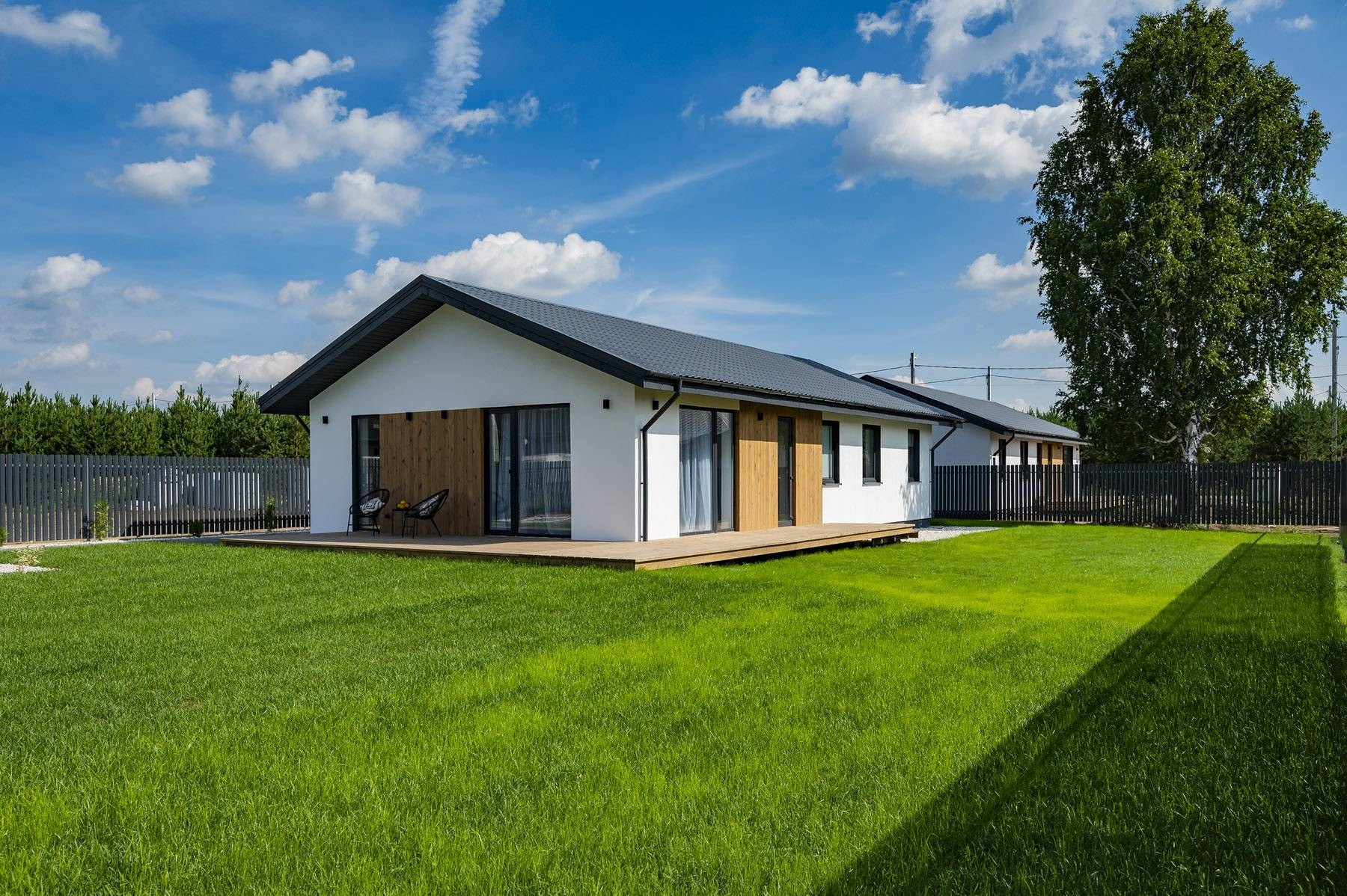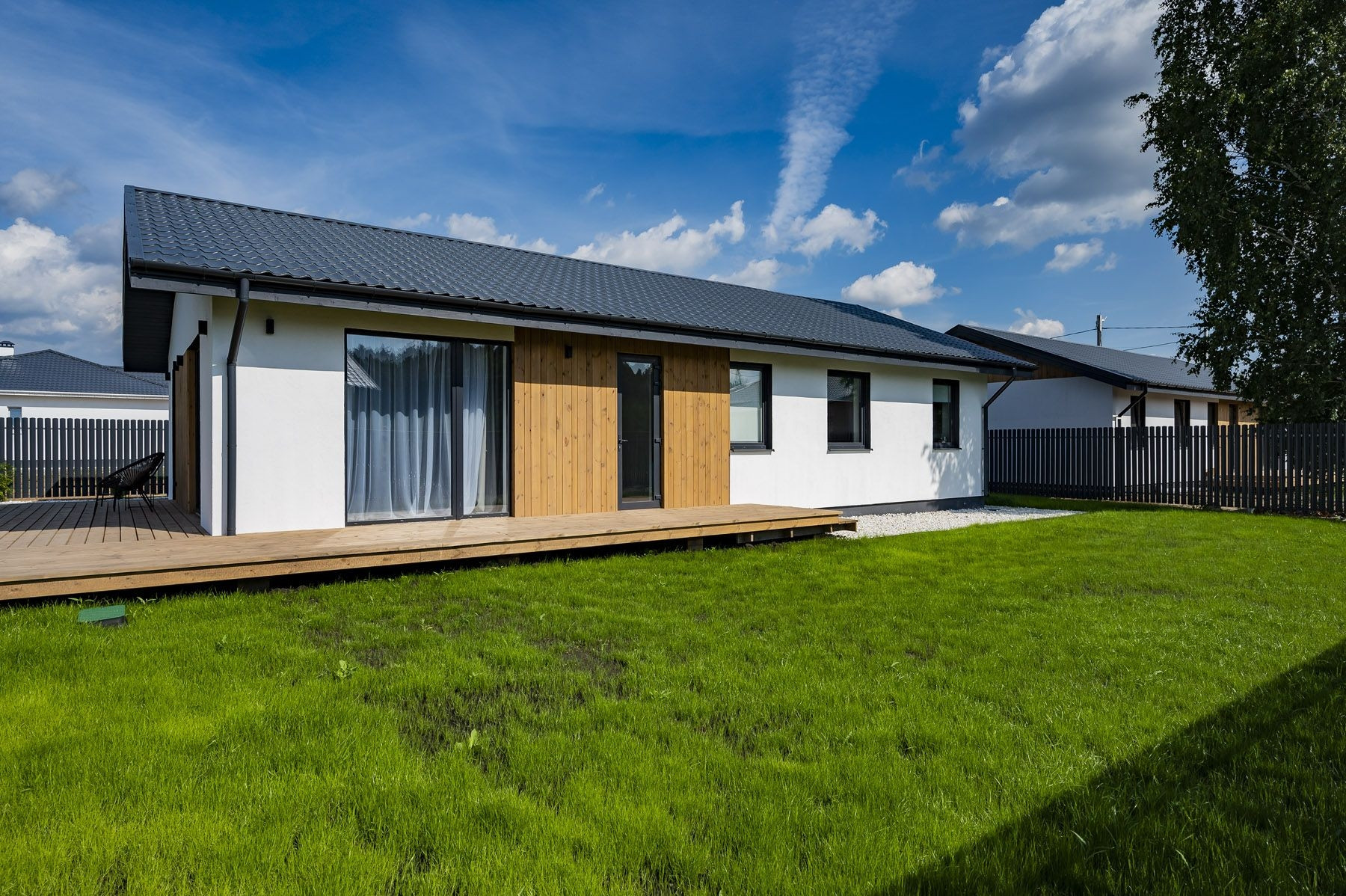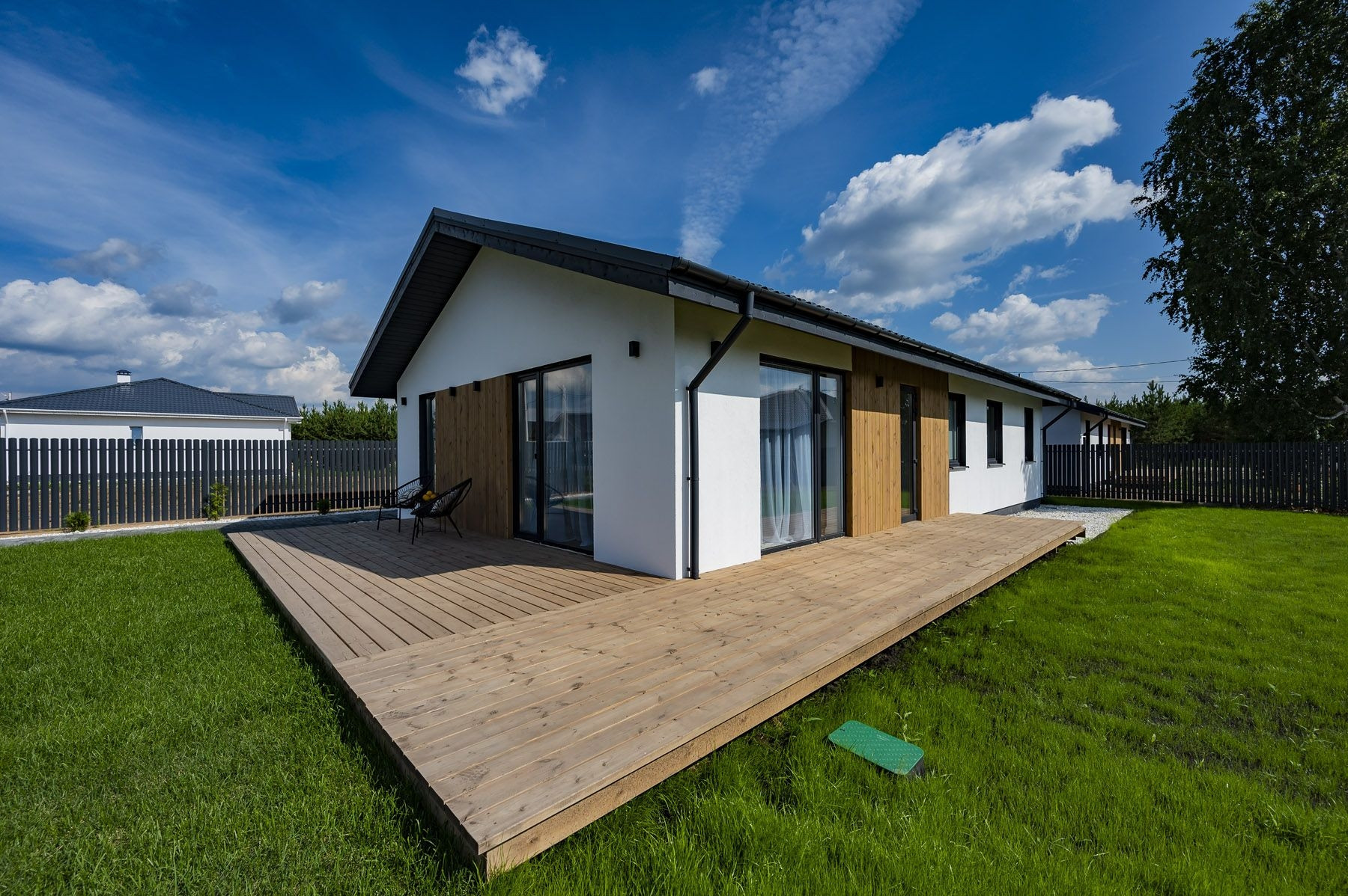 — Территория коттеджного посёлка ограждена, оборудована детская площадка.