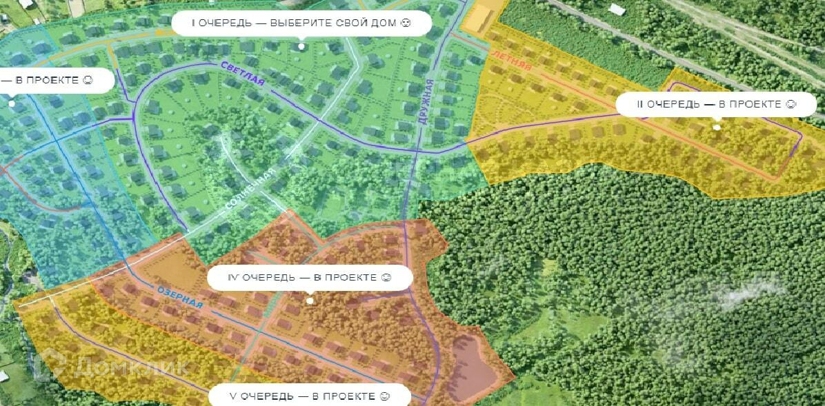 поселка будет 307 домовладений. Площадь земельных участков  от 6 до 19 соток. Поселок огорожен забором,