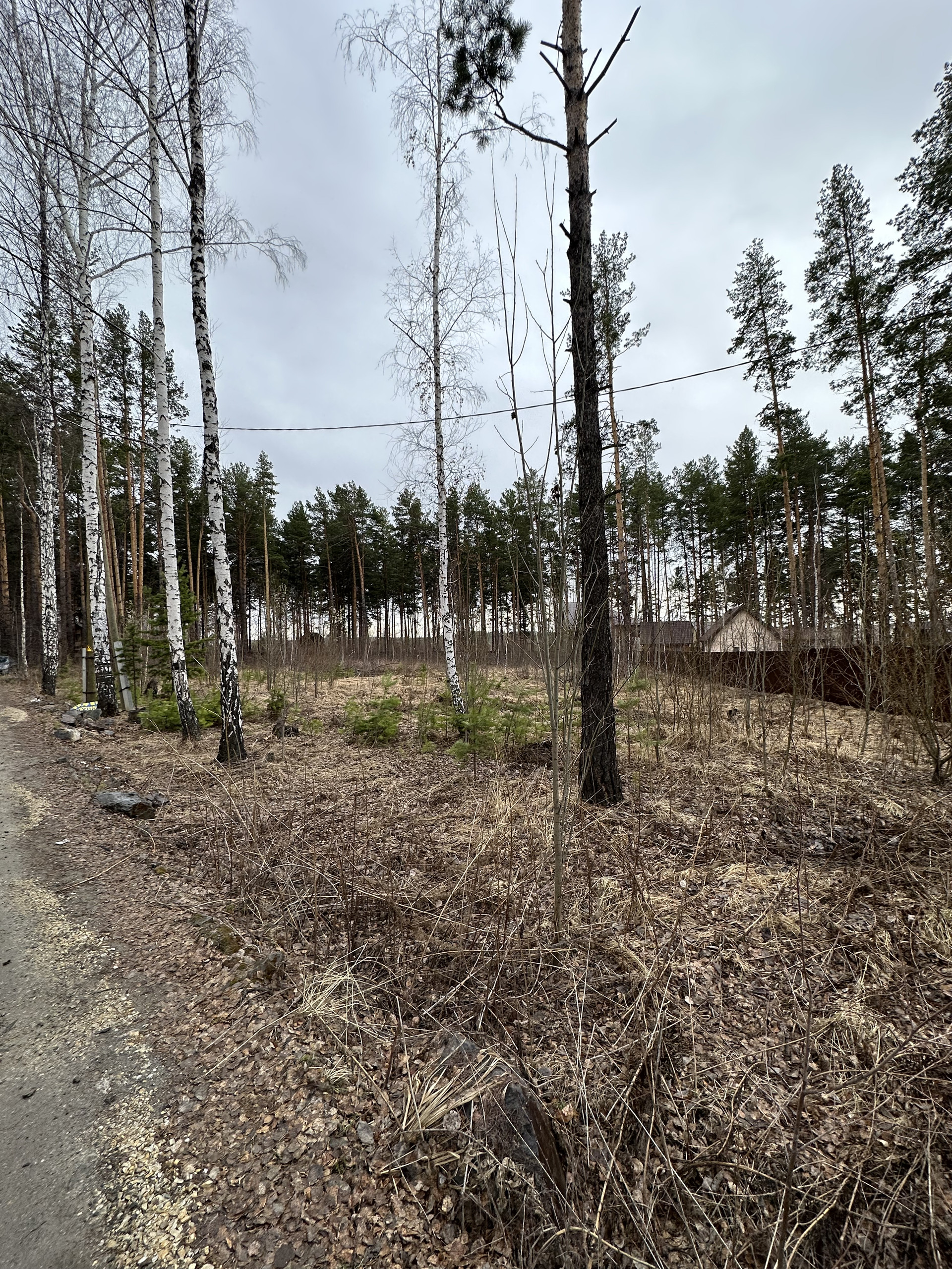 огорожен с двух сторон всё на участке есть для строительства дома (электричество газ )
