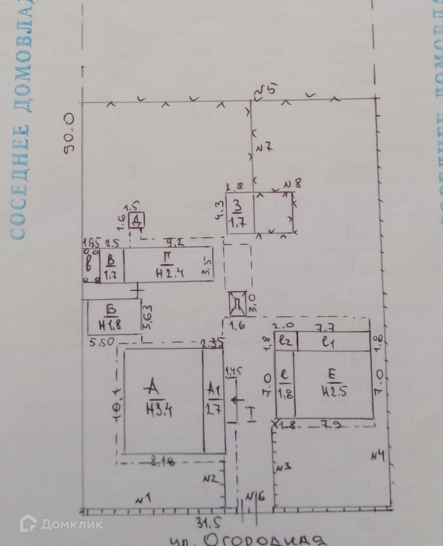 На участке плодовые деревья, есть постройки ( хоз. помещения).