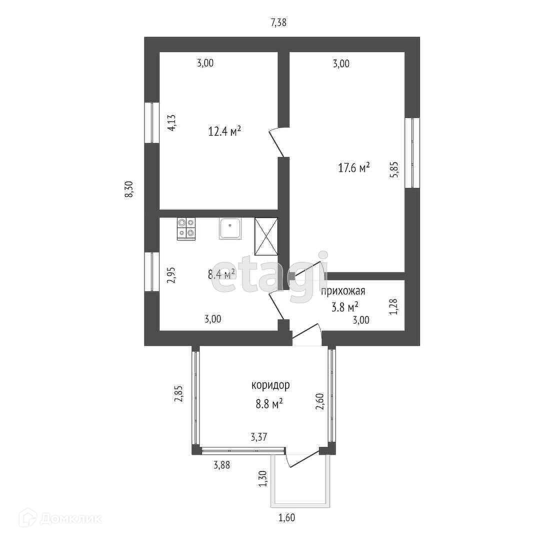 Общая площадь 51 м2