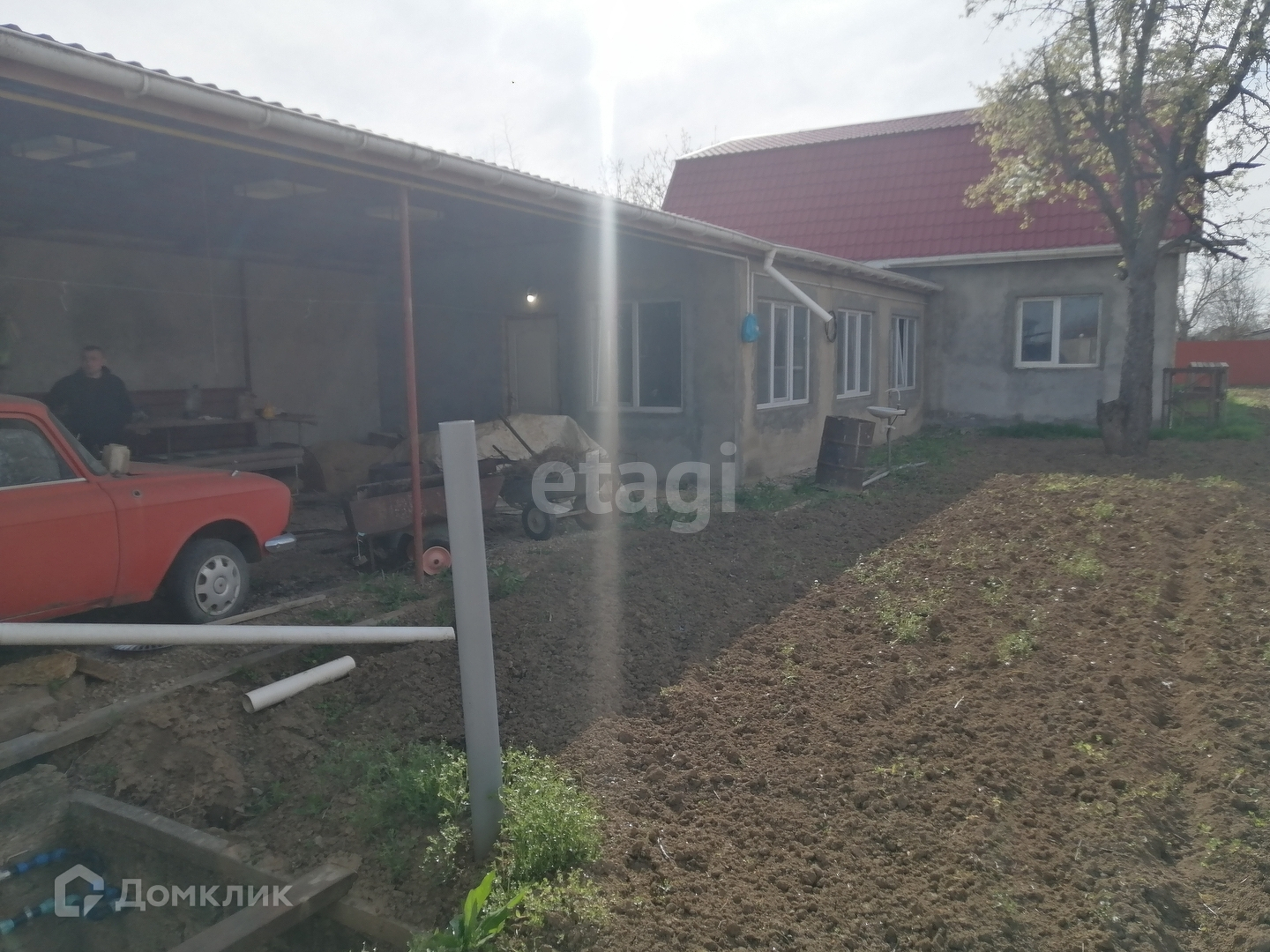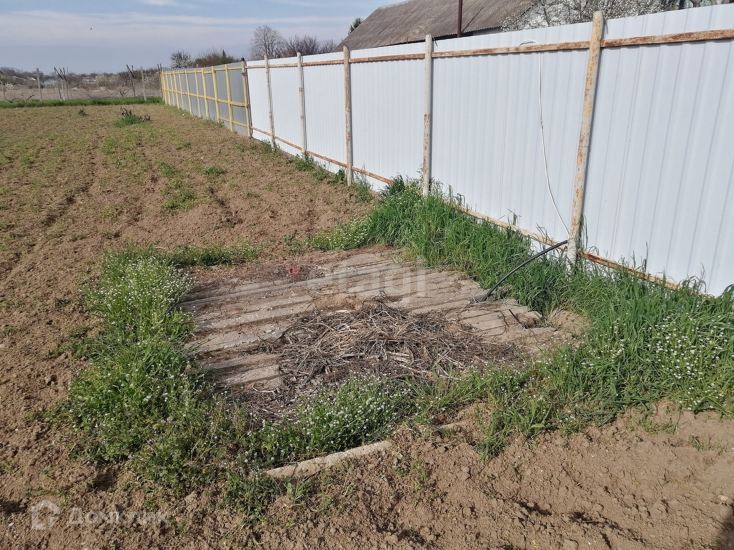 Участок ровный и чистый. Без бурьянов. Установлен навес на два автомобиля. Выкопано подвальное помещение. Большая выгребная яма на 20 м3.