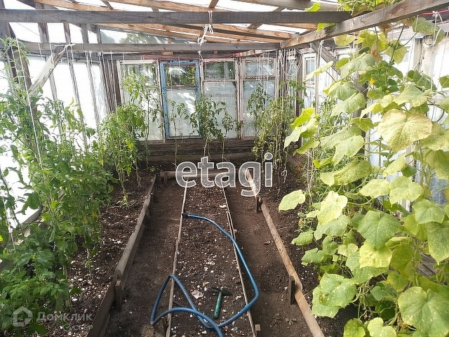 Участок разработан, теплица (дерево+стекло), парник, накопительный бак под воду. Вода для полива подается 2 раза в неделю.