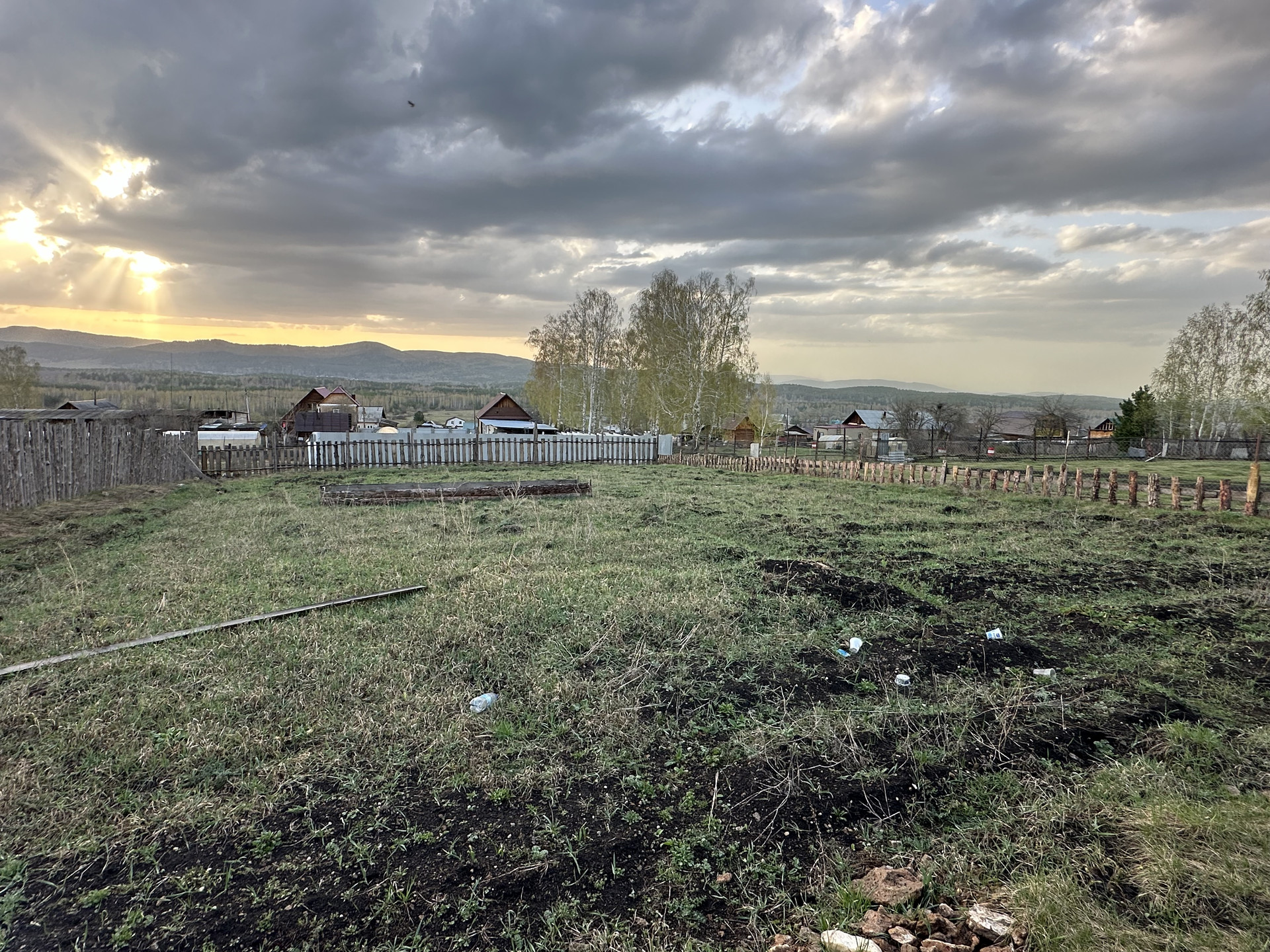 Хорошая почва под огород (чернозем). Огород огорожен деревянным забором.