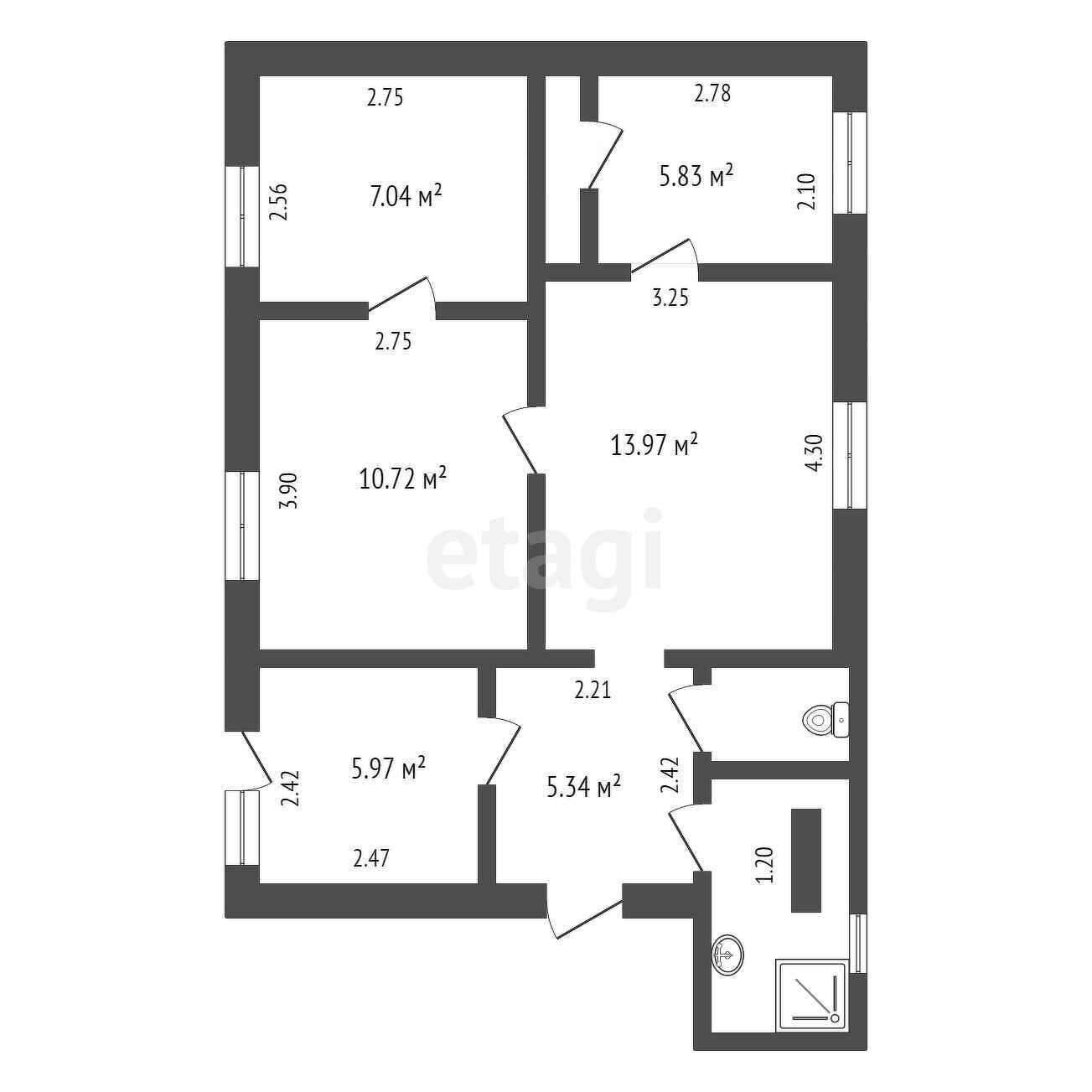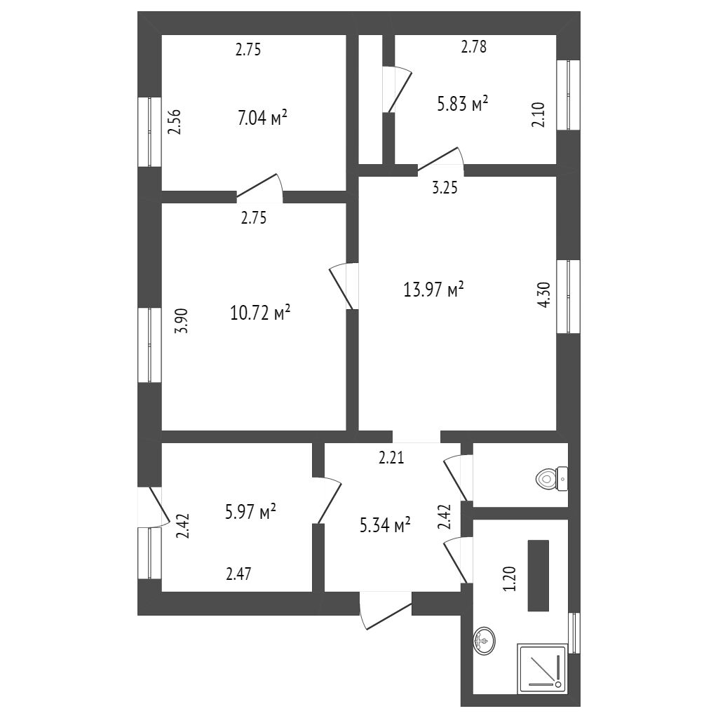 Общая площадь 59.2 м2