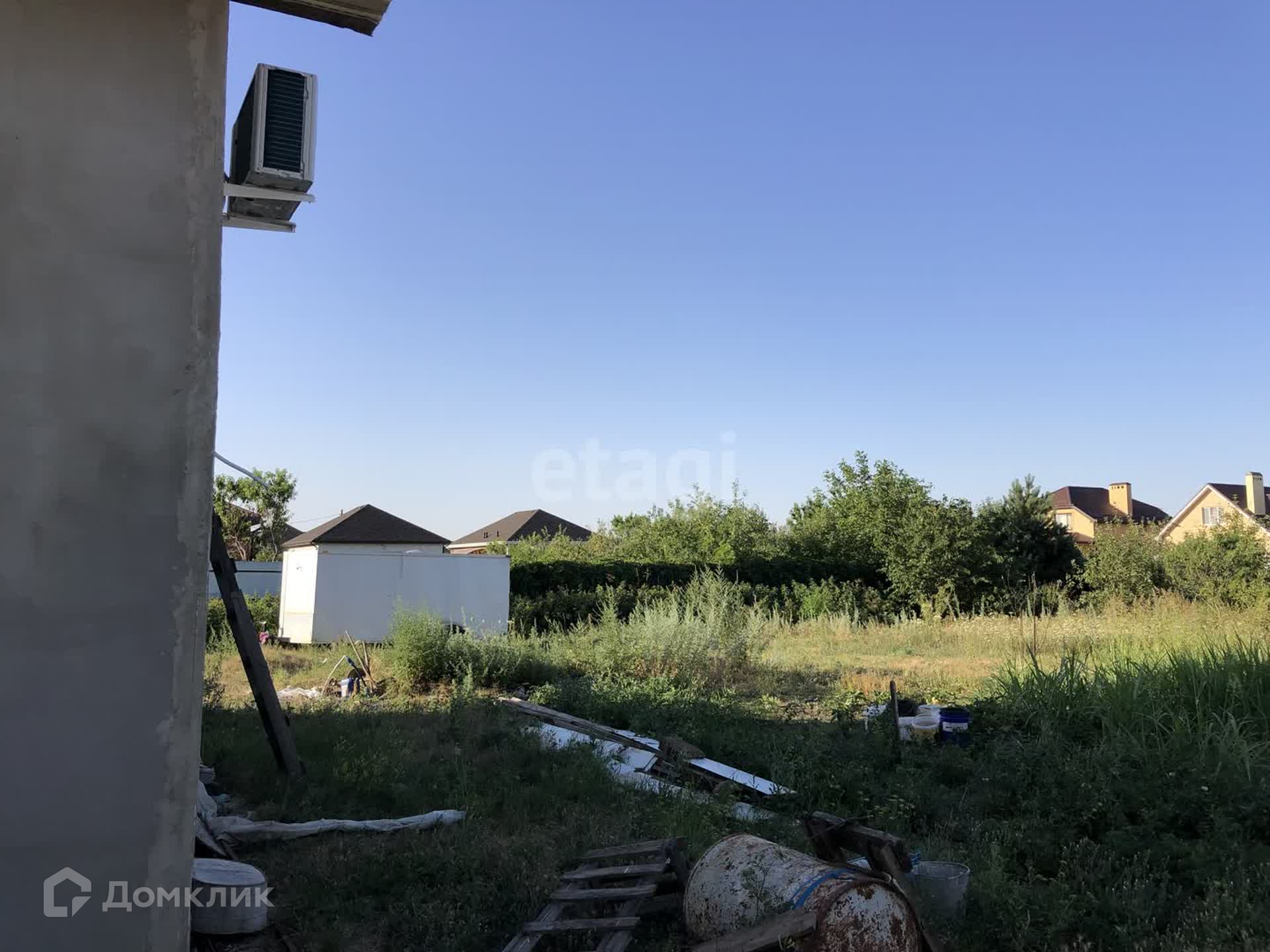 Площадь участка 20 соток. Есть небольшой сад и город (виноград, яблоки, груши).