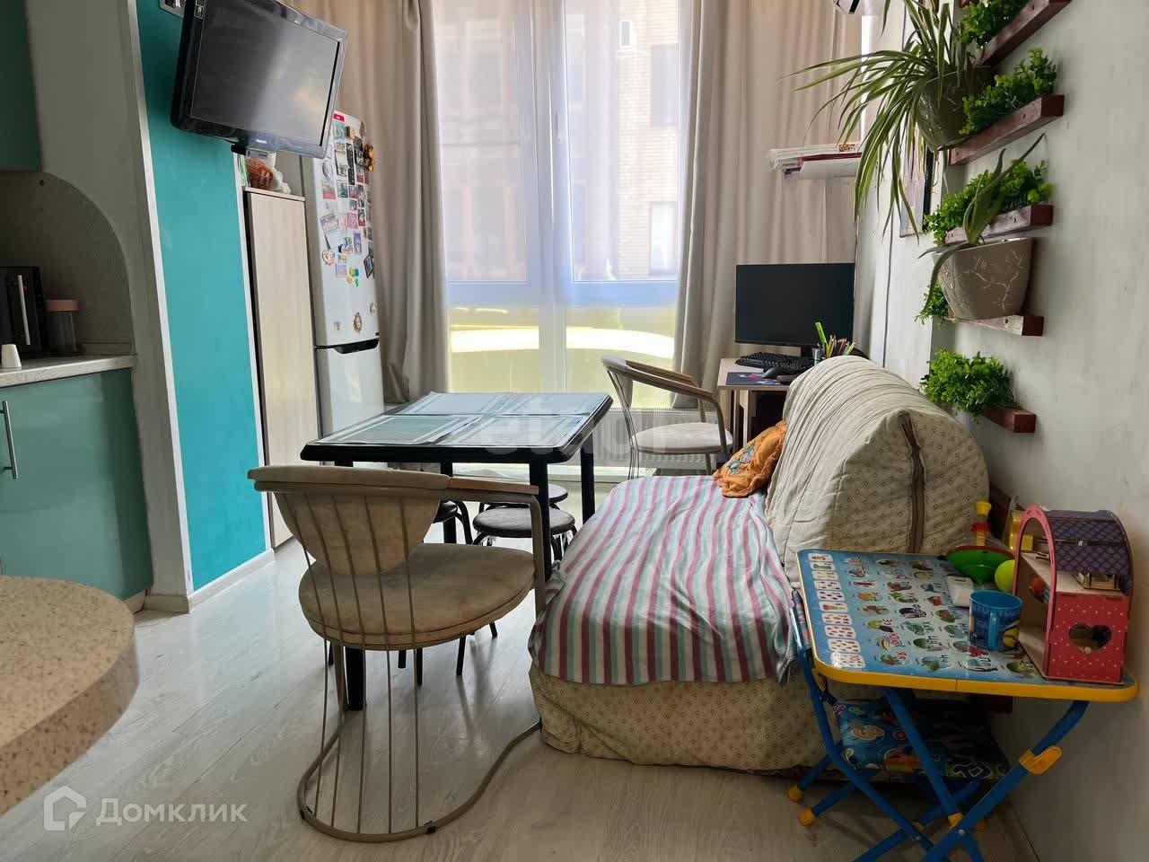 Квартира светлая и просторная, с дизайнерским ремонтом, общей площадью 37.1 кв. метра, высокими потолками -2.7 м. Установлены сплит-система и красивая кухня, организована уютная спальная комната. Во всех помещениях на полу ламинат высокого качества, в ванной - плитка.