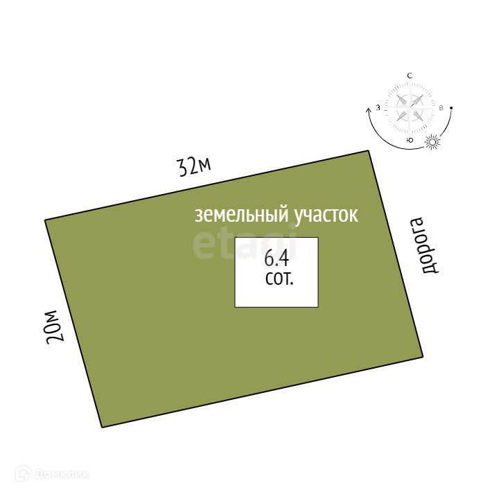 Площадь участка 6.4 сот.