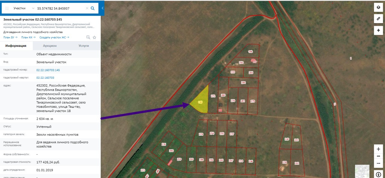 Дюртюлинский р-н, с/с Такарликовский, с Новобиктово, ул Таштау, д. 18,     02:22:160703:145