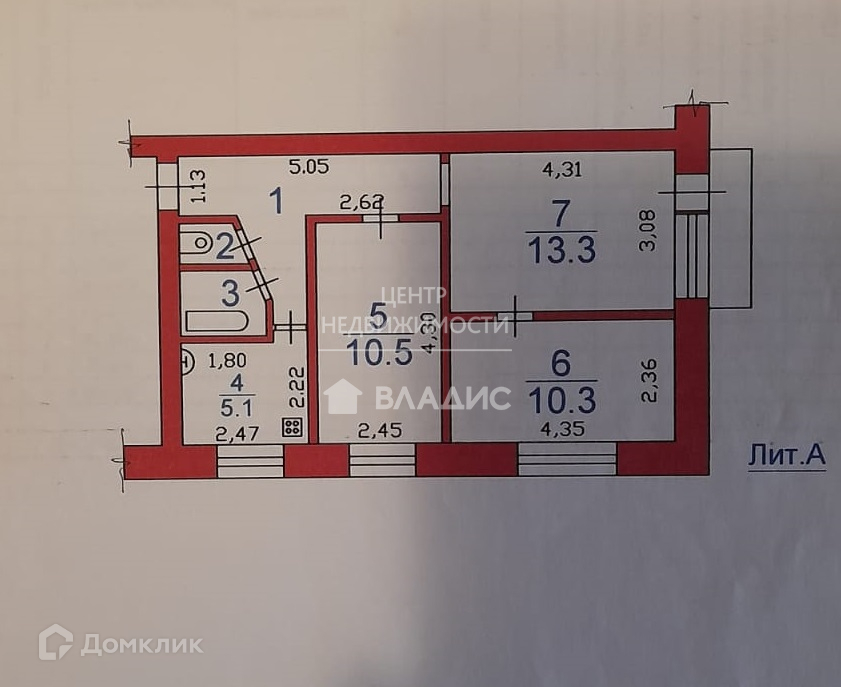 Общая площадь 51.6 м2