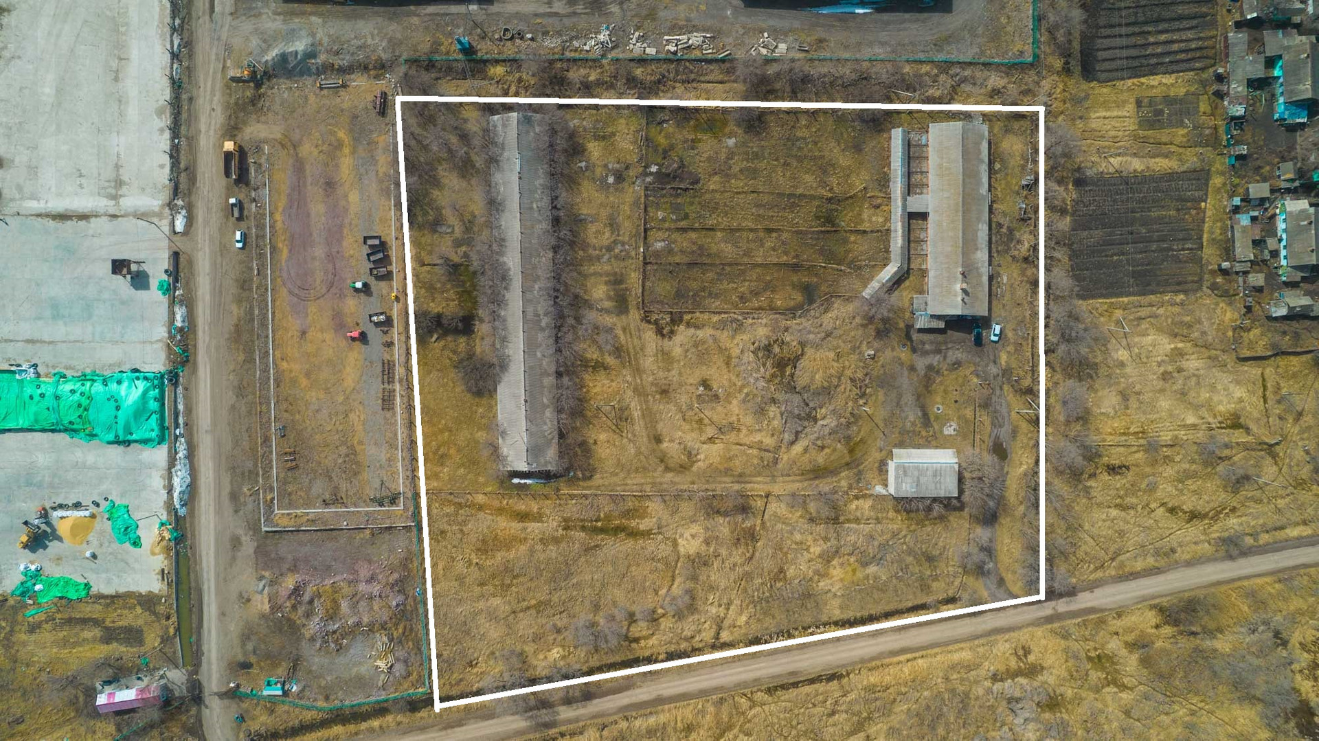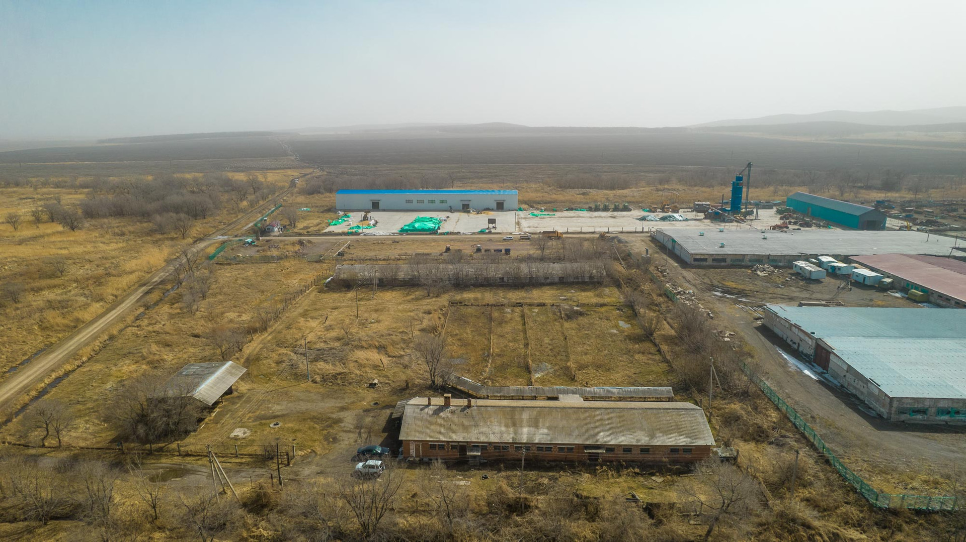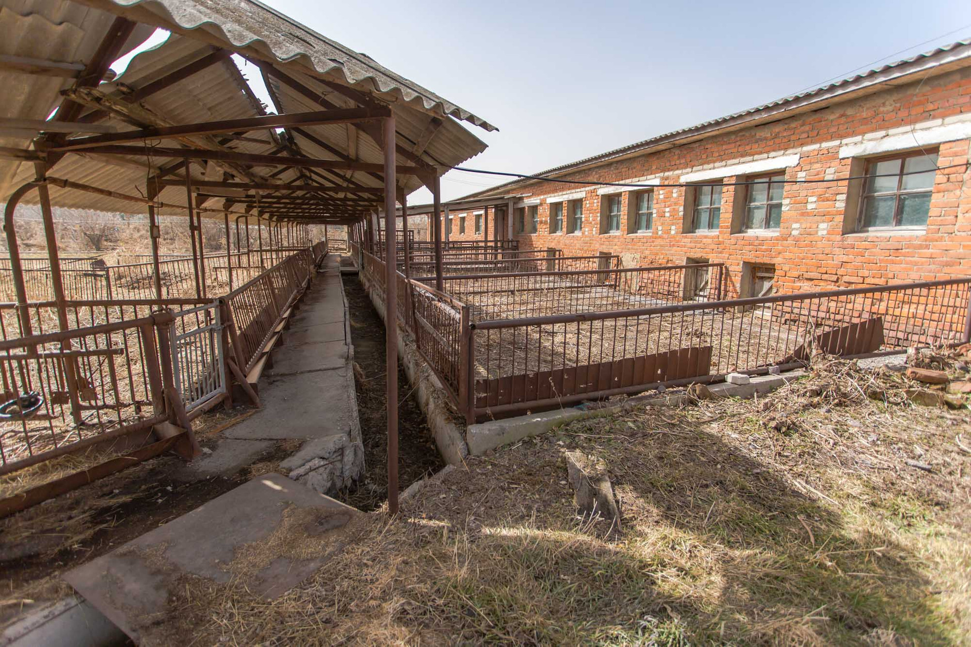Благоустроенная территория, весовая, огороженные места для пребывания животных в летнее время, парковка для сельскохозяйственного транспорта.