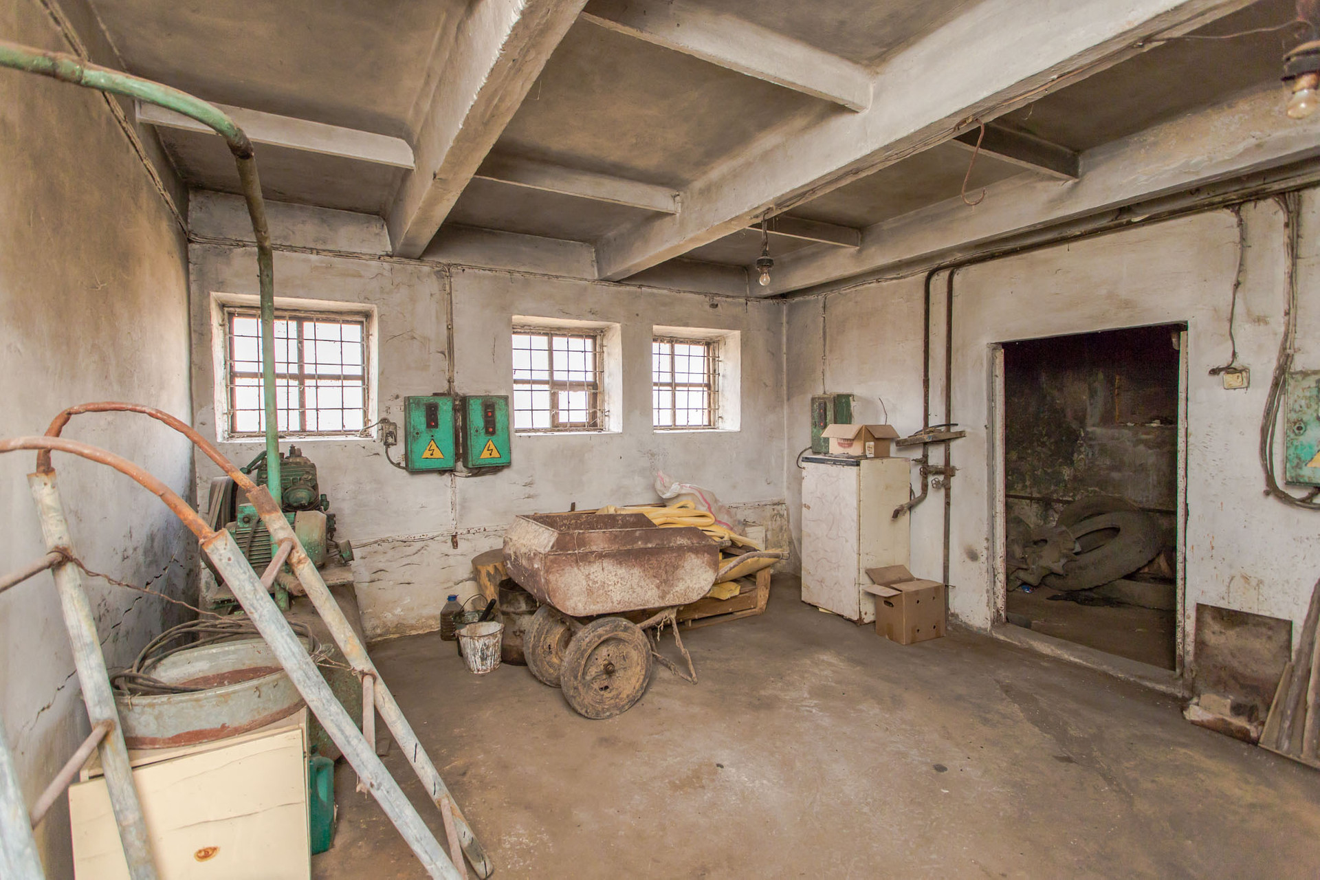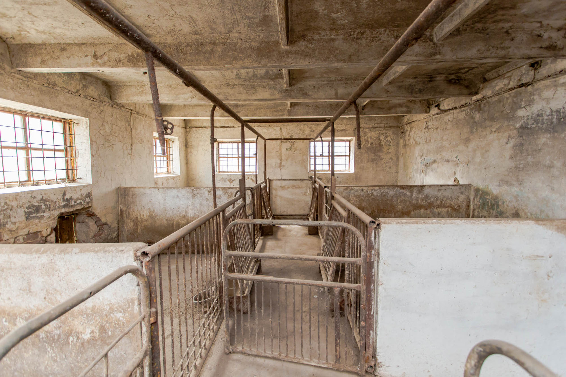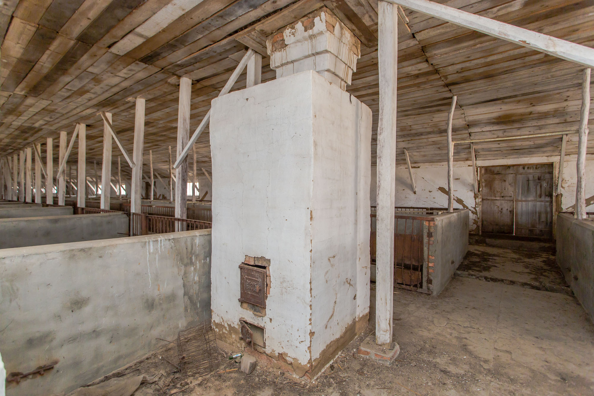 Состоит из бытовых помещений: щитовая, комната для персонала, кочегарка, туалет, зернодробилка, в хлеву по периметру установлена транспортерная лента.