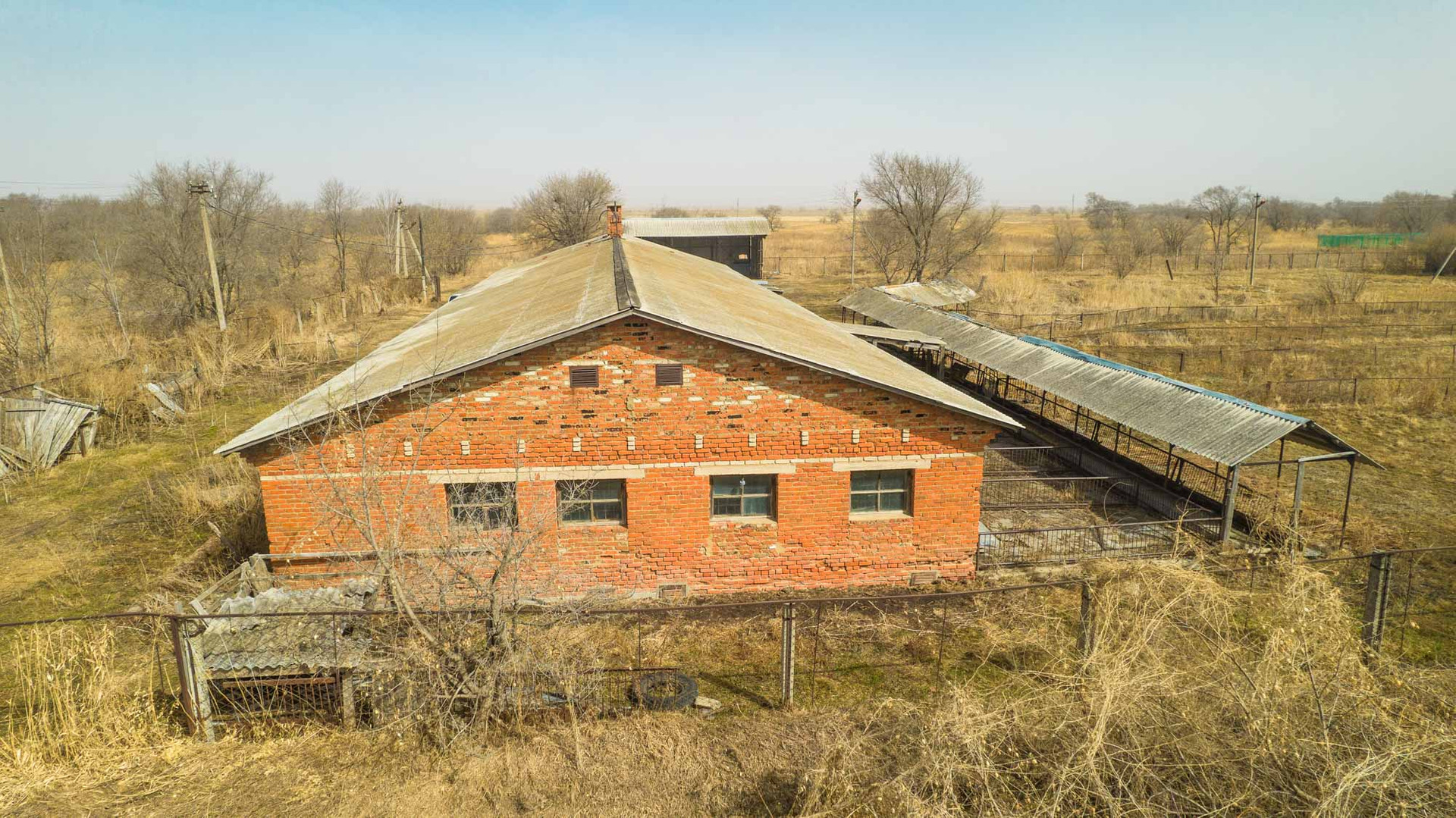 - Служебно-бытовое здание №2, S=590 кв.м, 2000-ных годов постройки, материалы стен штукатурка с камышом, перекрытия деревянные, высота потолков 4,5 метра, хлев - крытый для домашних животных, овцы, свиньи и другие.