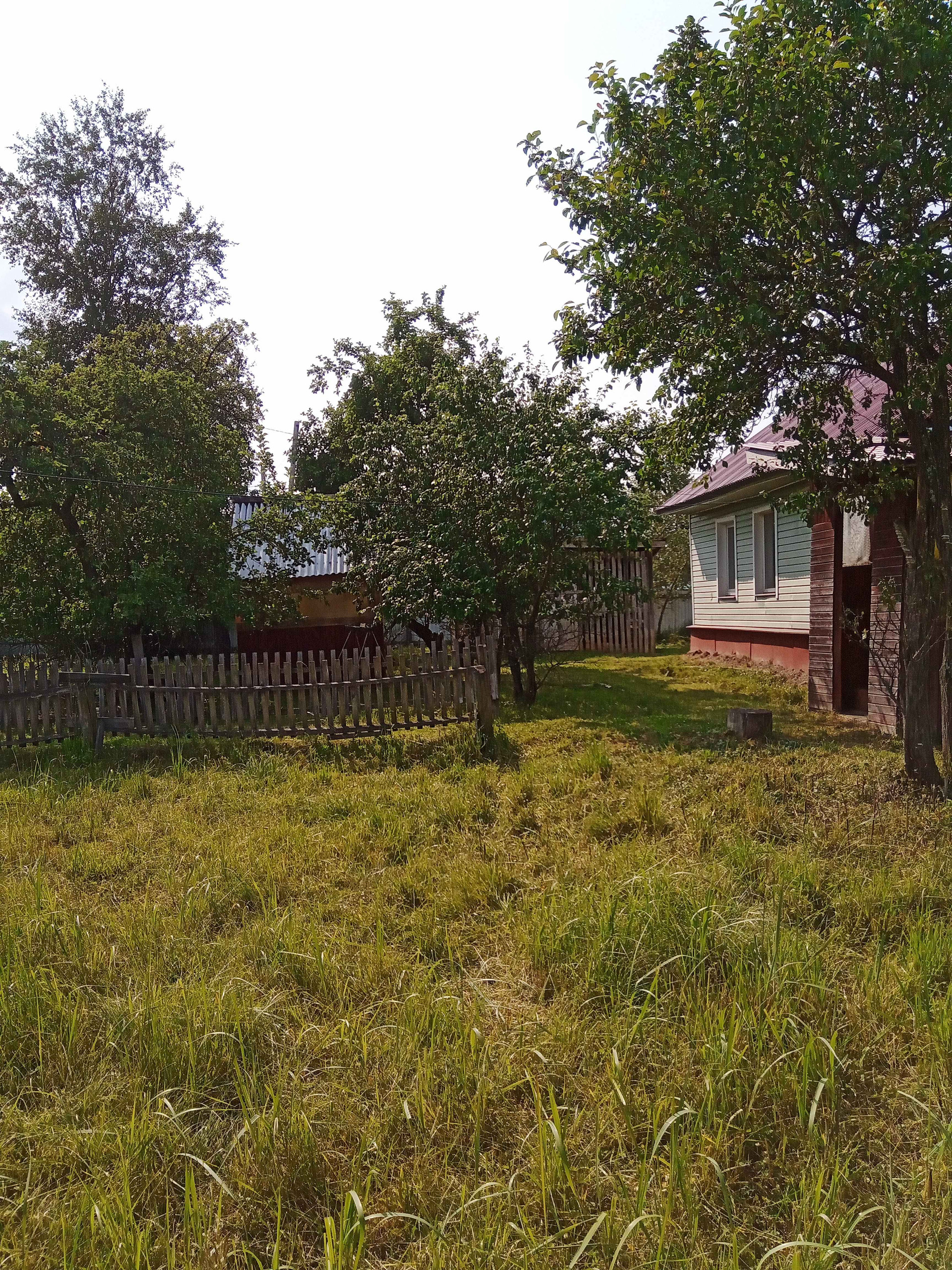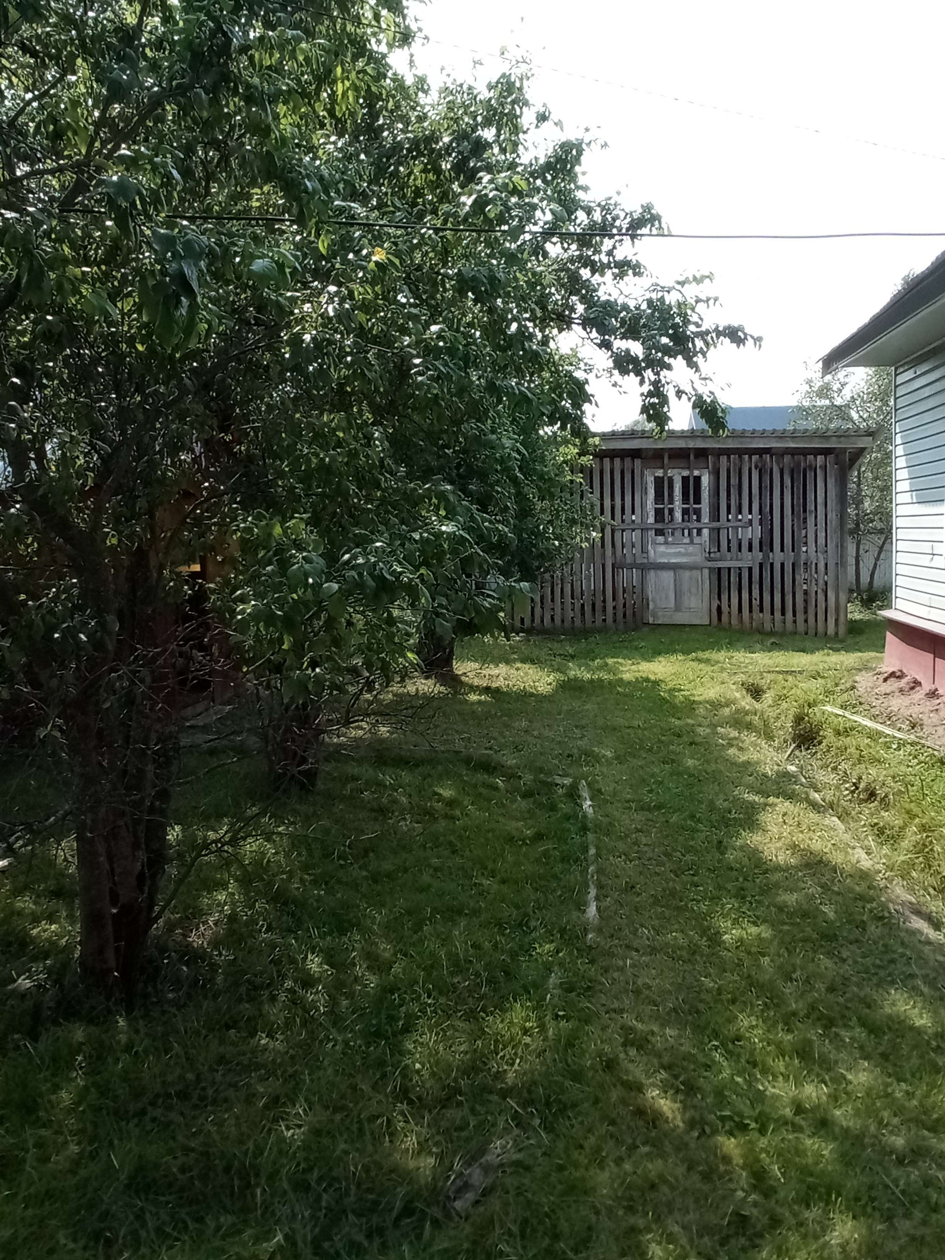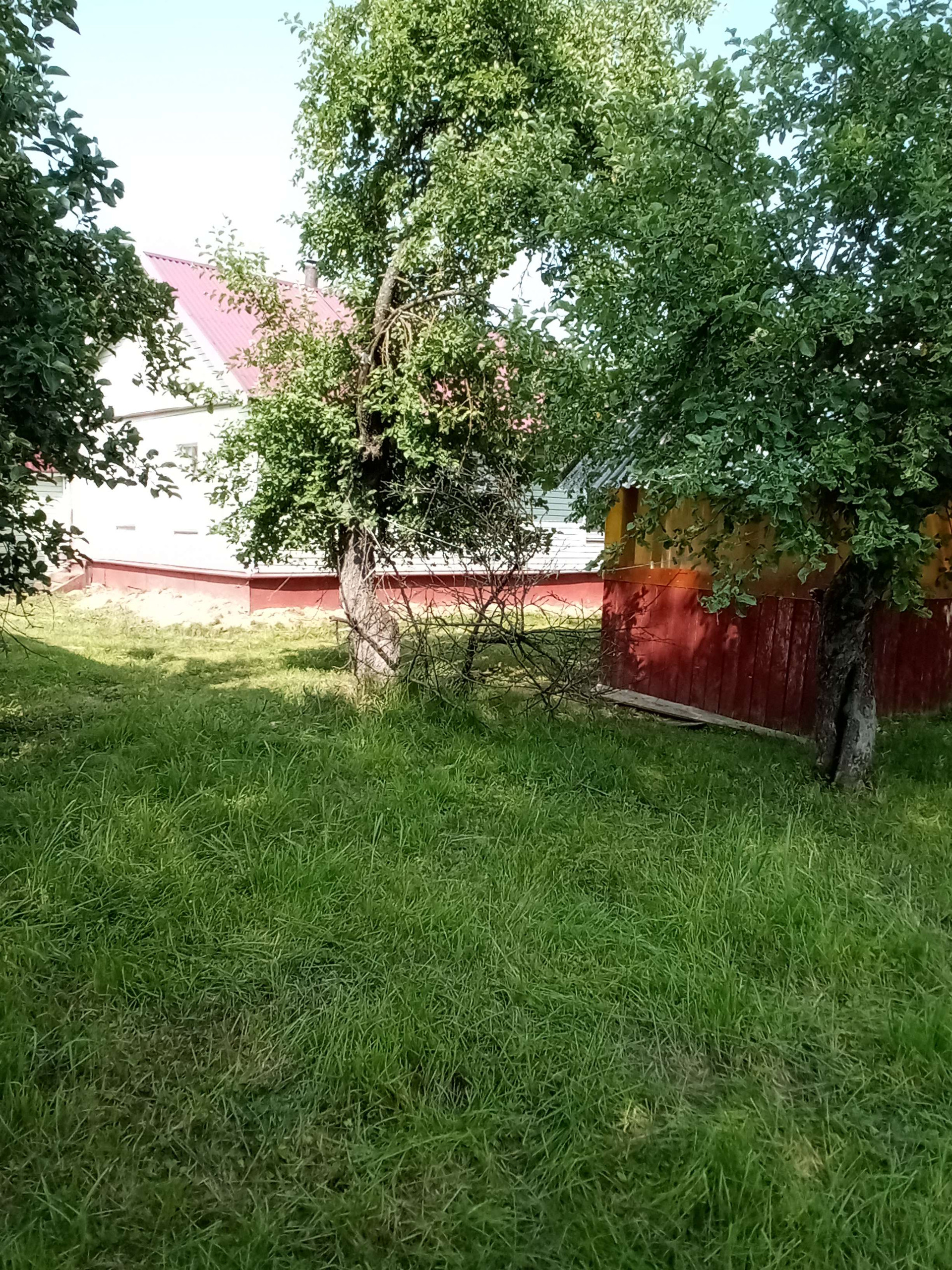 большой огород Сад яблони сливы вишня большая ель.газ болон но вдоль участка за забором газопровод