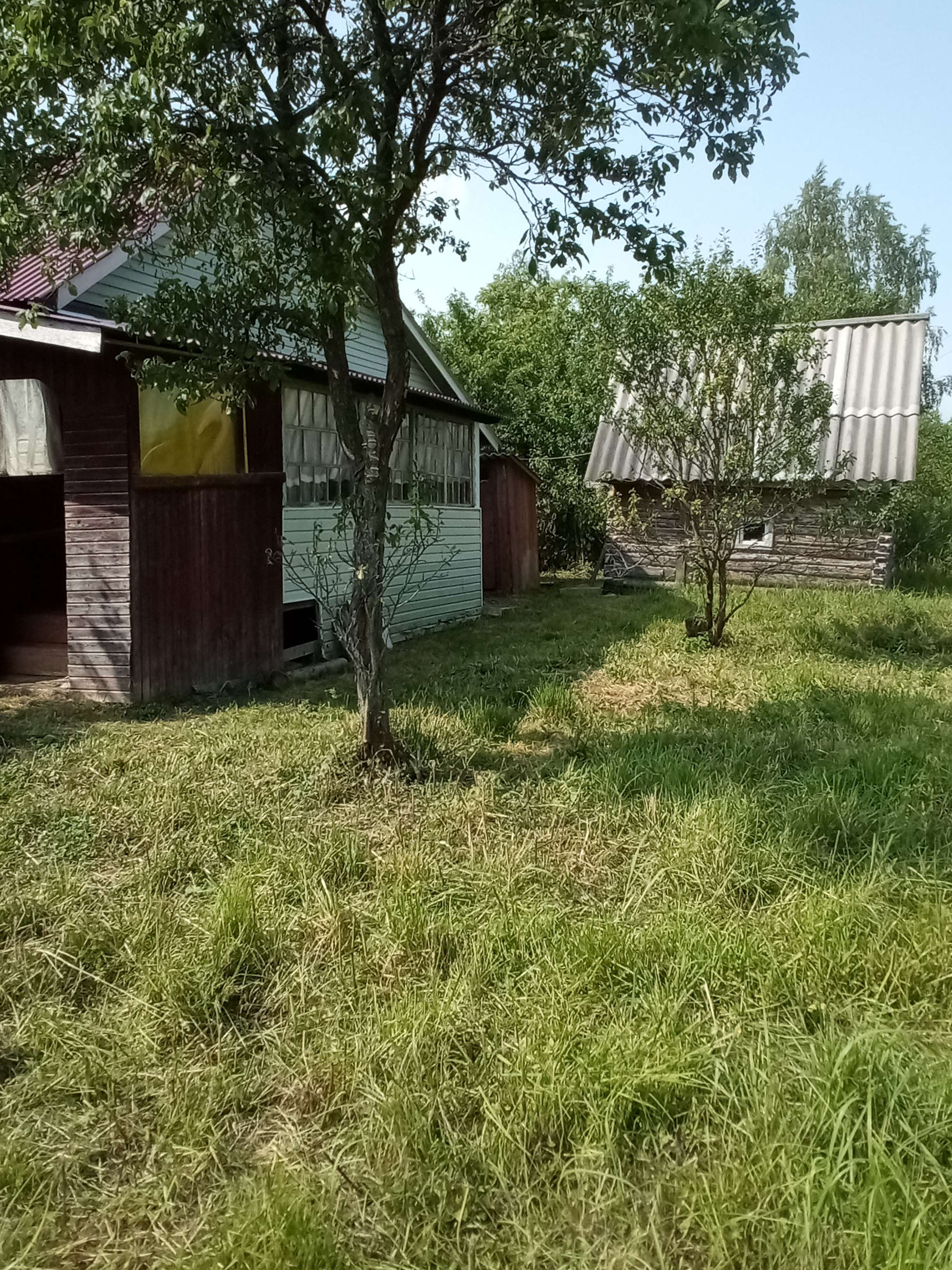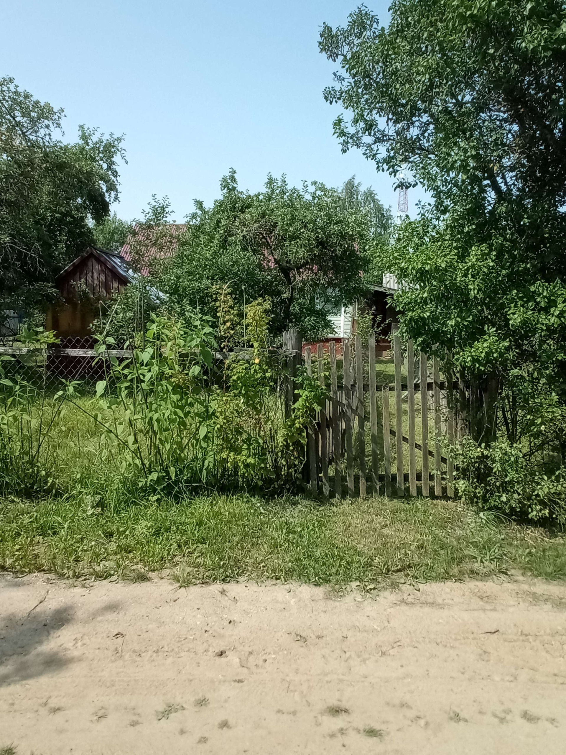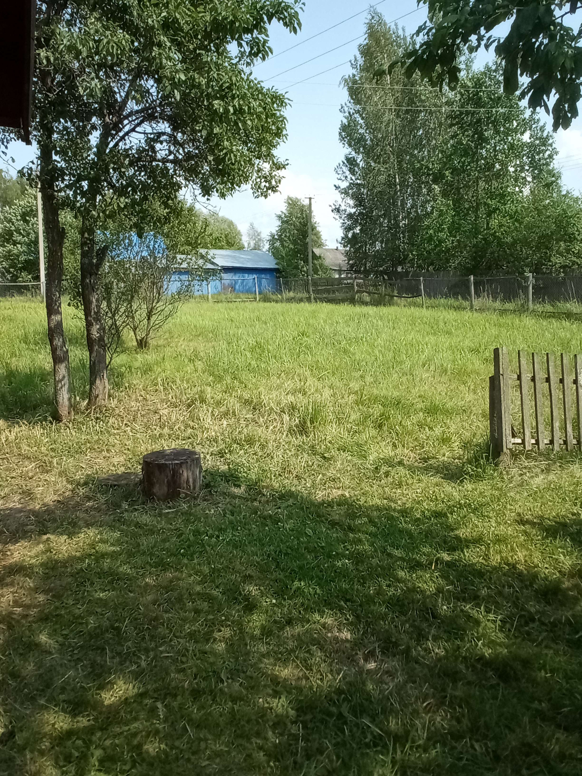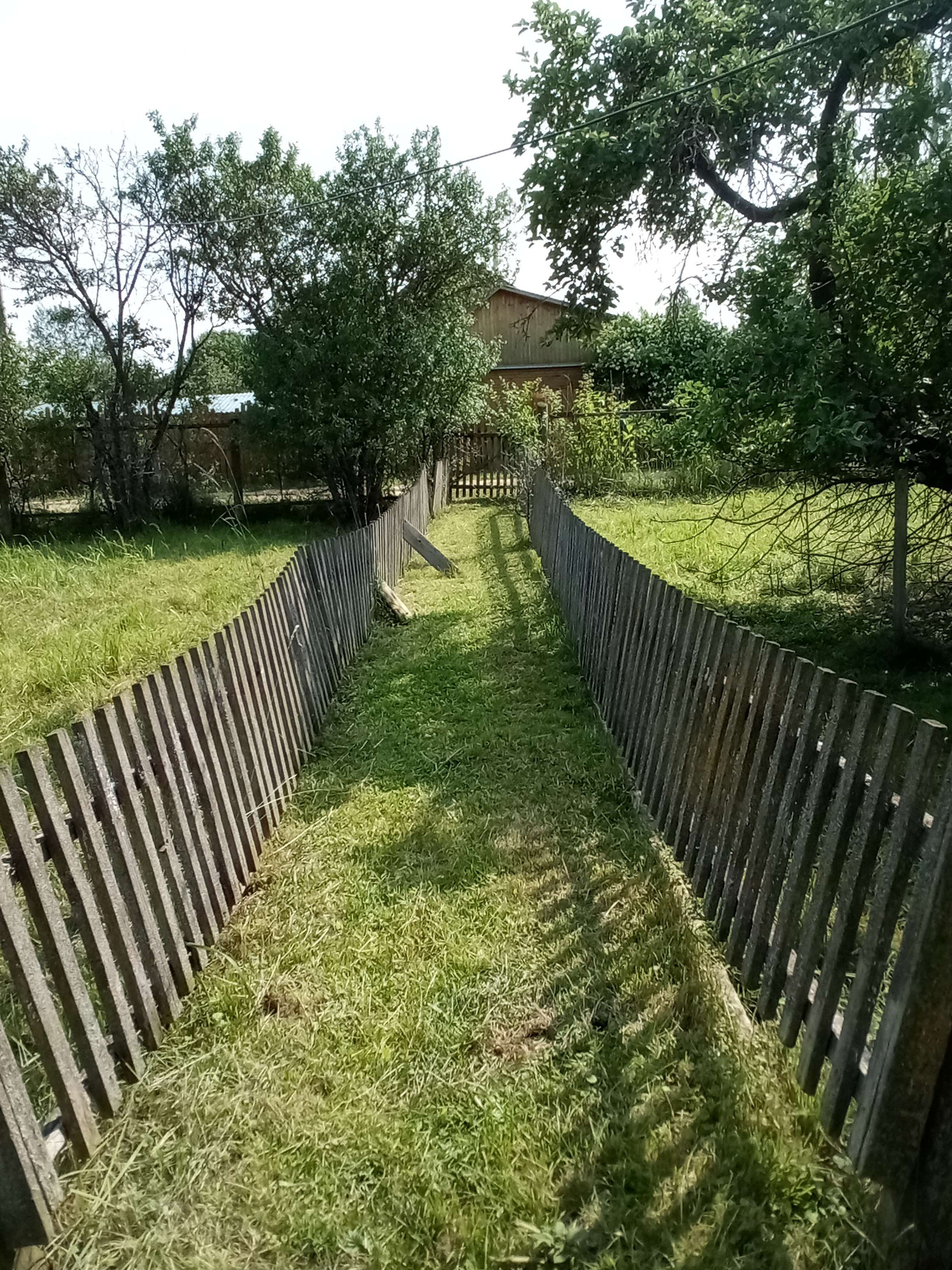 большой огород Сад яблони сливы вишня большая ель.газ болон но вдоль участка за забором газопровод
