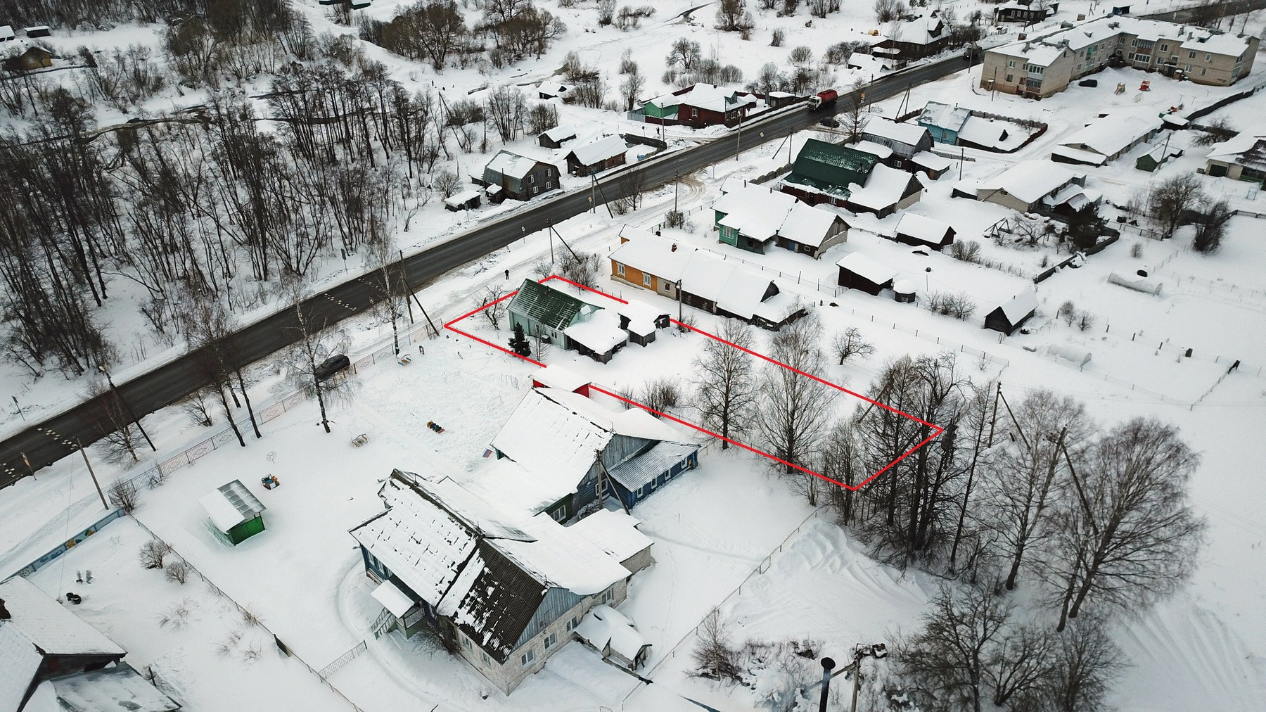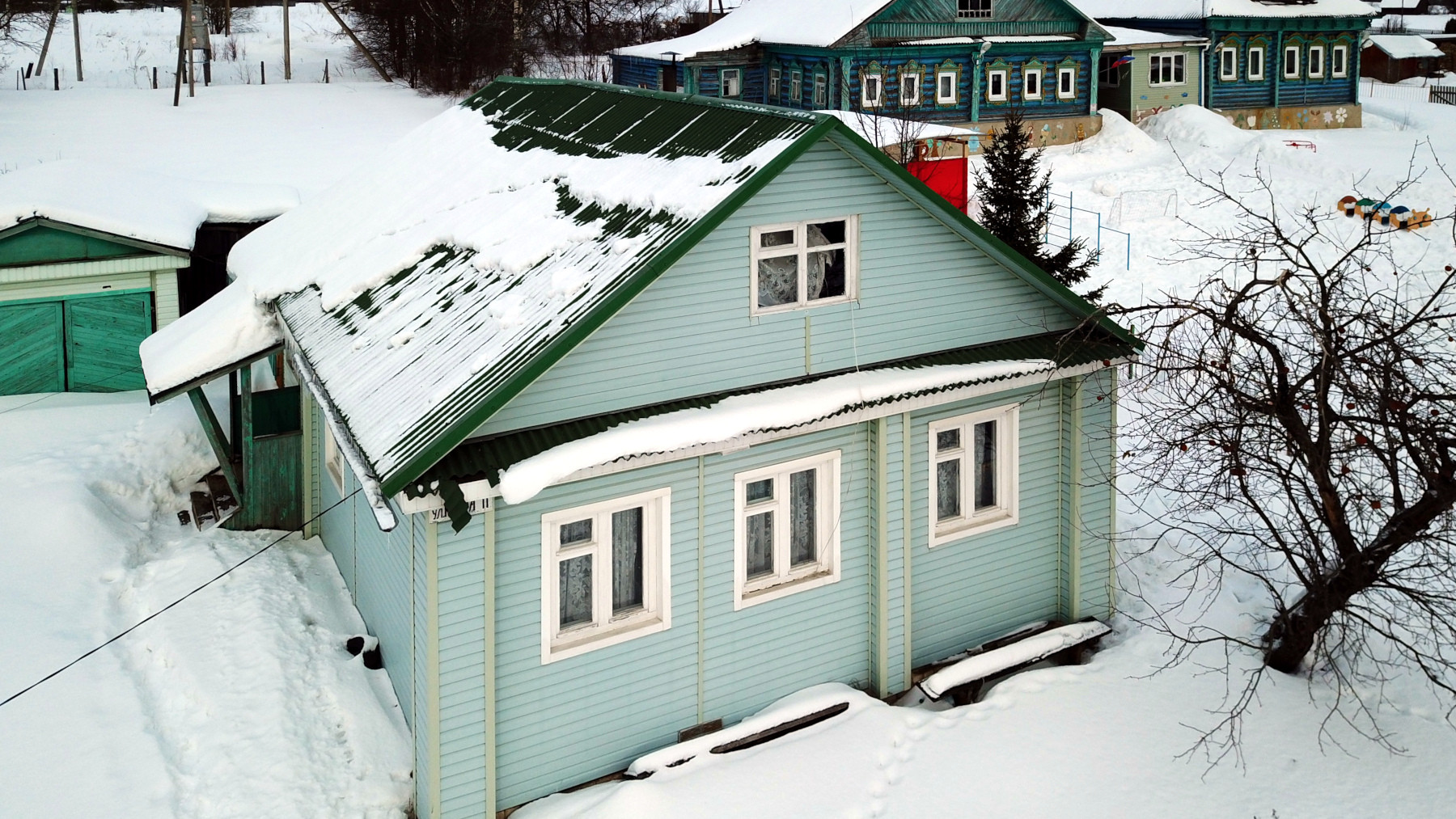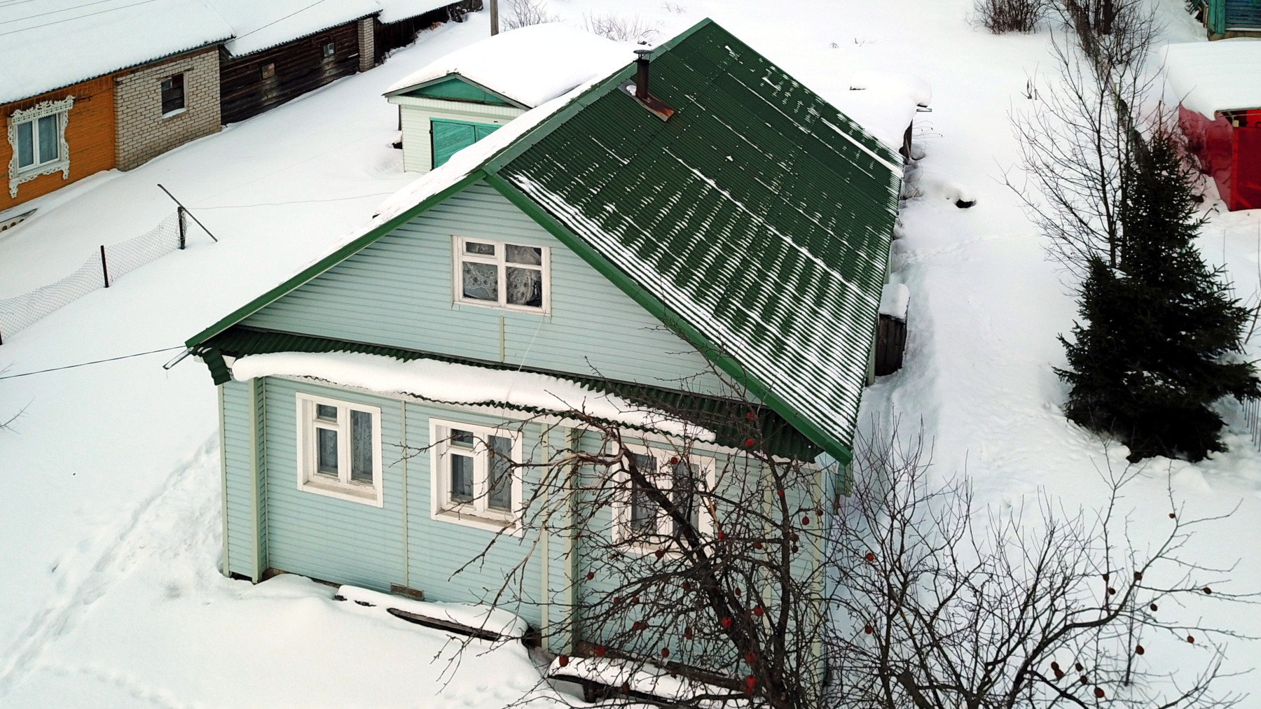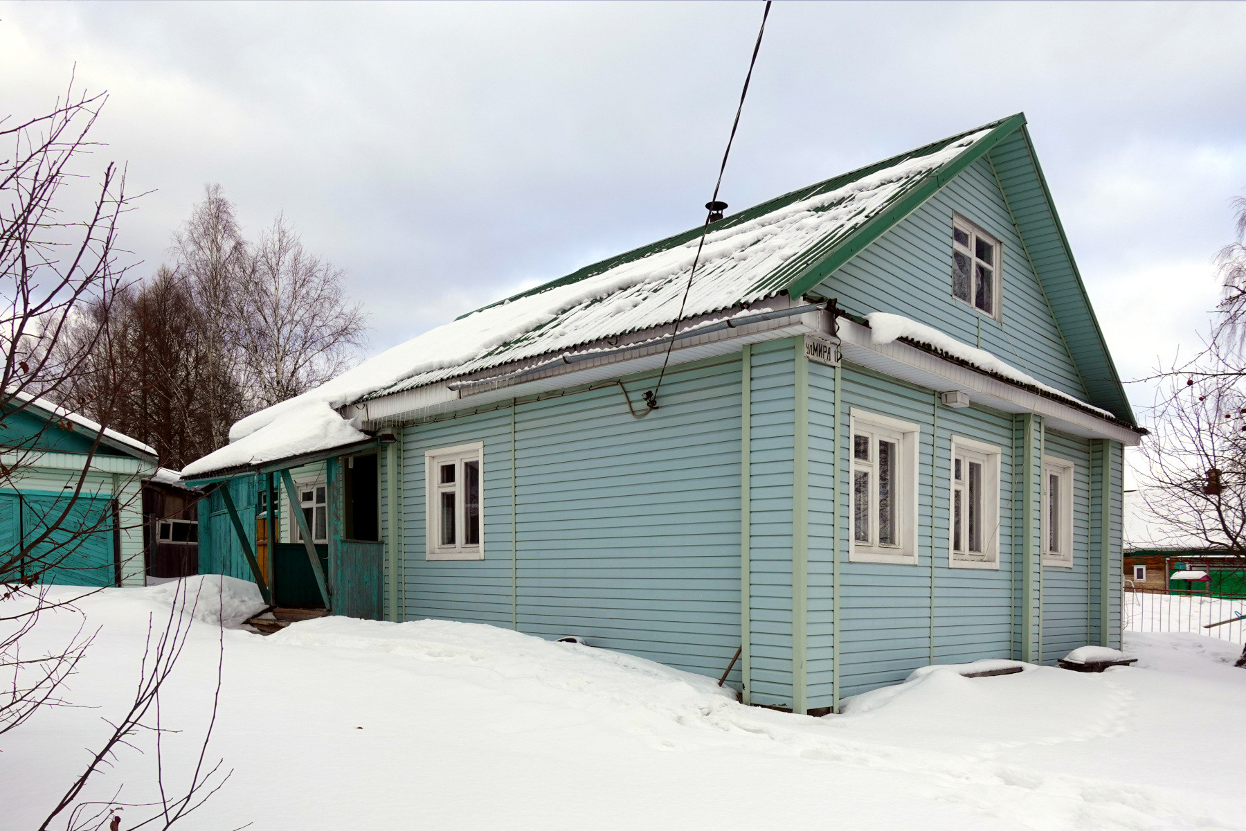 Деревянный дом, начала 20-го века постройки, из качественного бревна, снаружи отделанный виниловым сайдингом. Недавно кровля дома и стропильная часть была полностью обновлена и перекрыта ондулином (еврошифер).