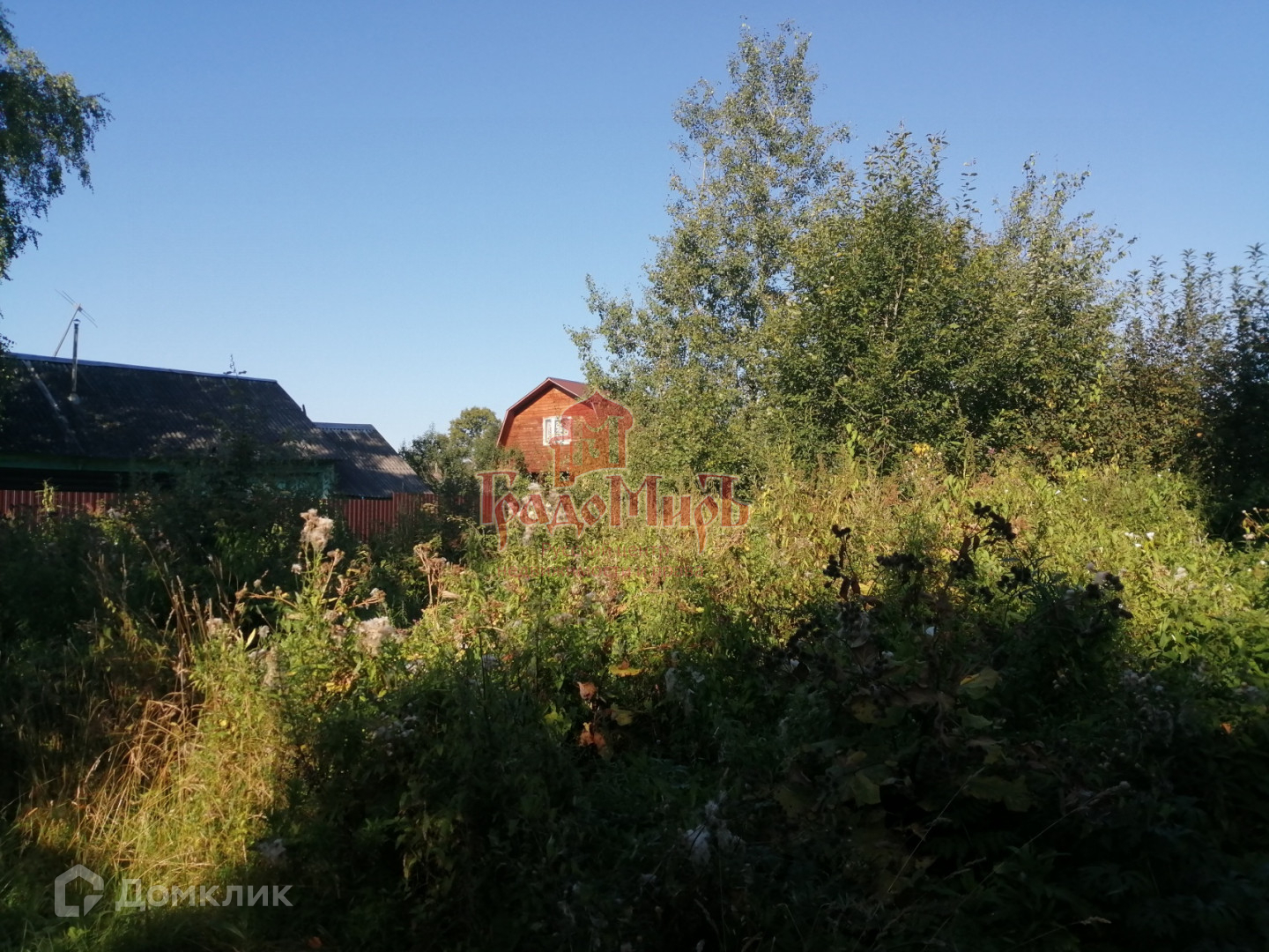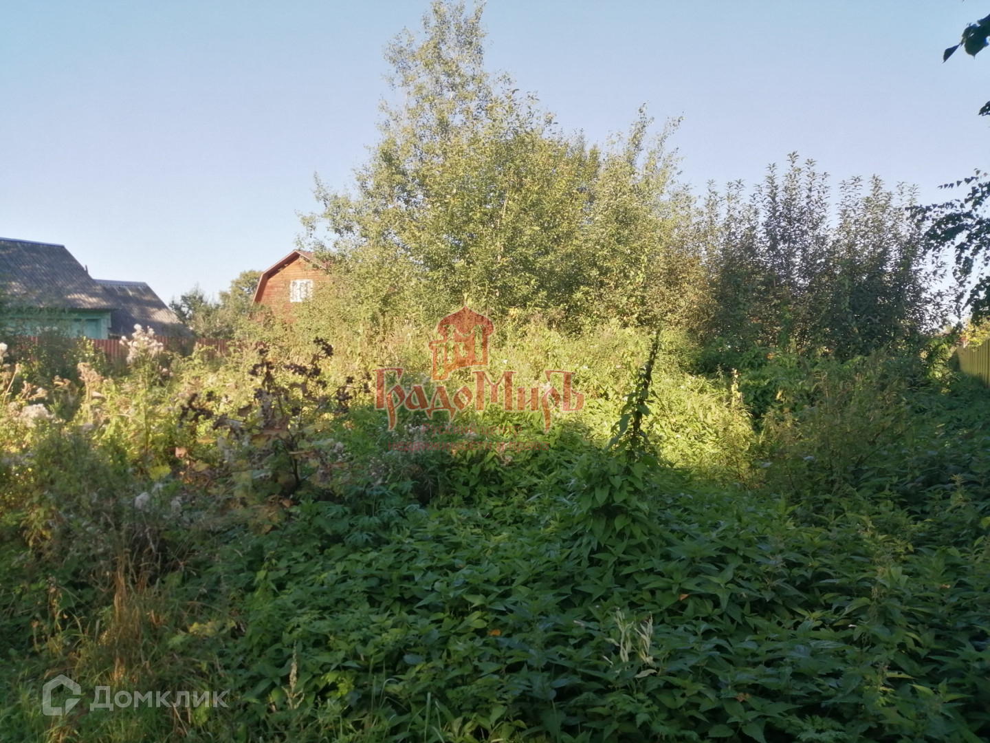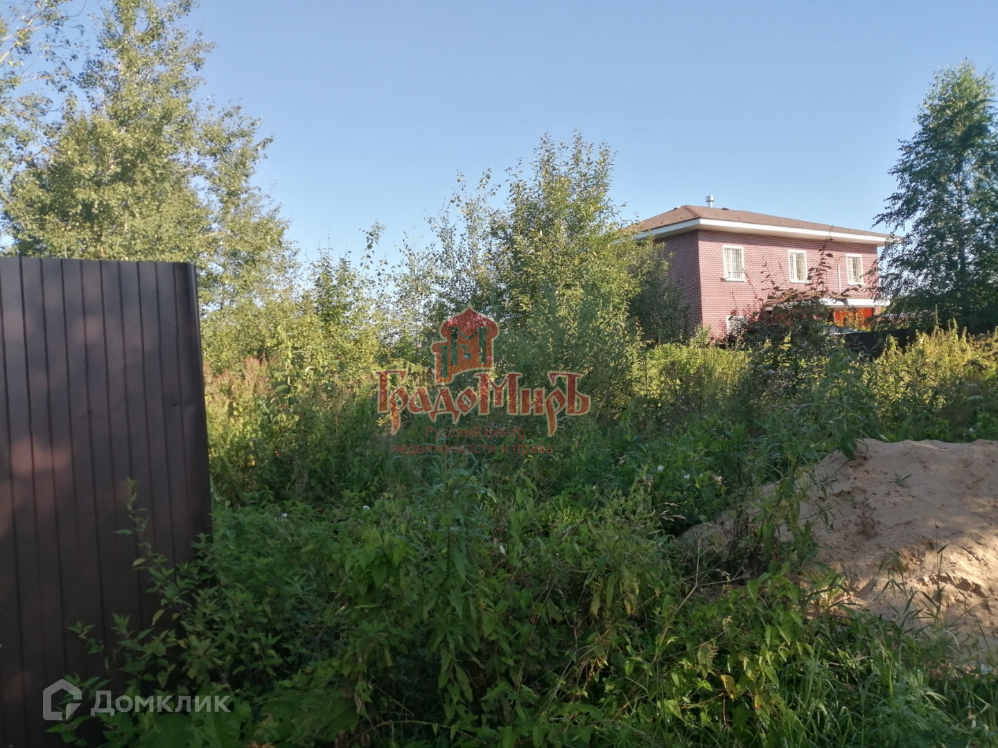 Фасадом участок выходит на Ярославское шоссе (трасса М8) (до шоссе 30 метров). Участок не разработан, строений не имеет, Не огорожен.  С права и с лева огражден заборами соседей. Перед участком пруд с деревьями по берегам.