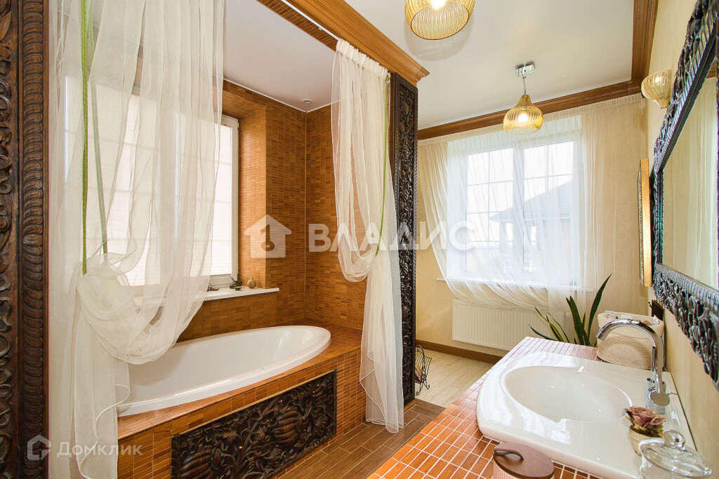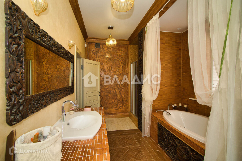 Отдельно хотелось бы отметить - в доме присутствуют крупноформатные декоративные панели ручной работы из тика, сделанные на заказ на Севере Тайланда. Несколько таких деревянных гравюр украшают разные помещения дома. Корпусная мебель во всех комнатах сделана на заказ- ручной работы фабрики  AM-Classic (Португалия). Кожаная мебель в кабинете производство фабрики Maggi Massimo (Италия).