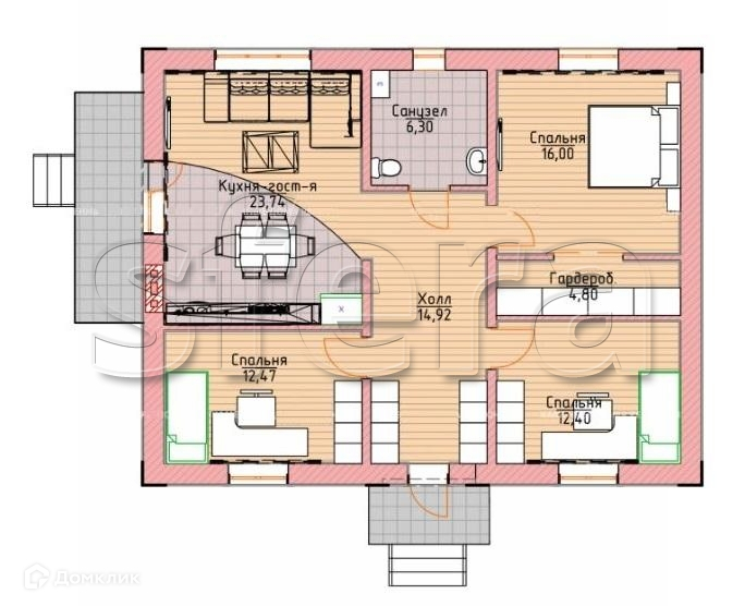Планировку можно изменить под себя, фасад дома тоже выбрать другой, можно 2х этажный, сделаем проект под Вас ( любую квадратуру, планировку)