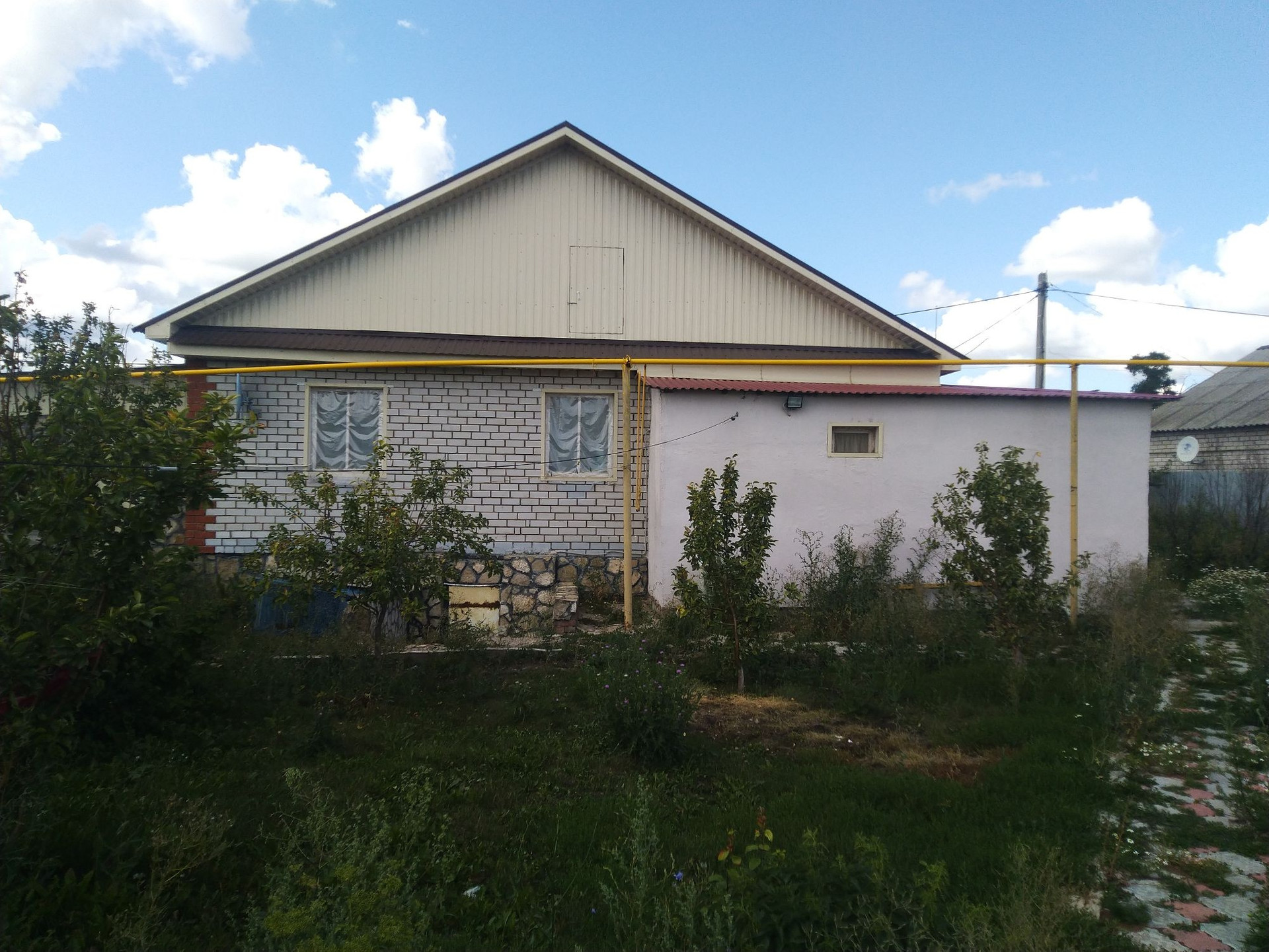 Дом деревянный обшитый кирпичом